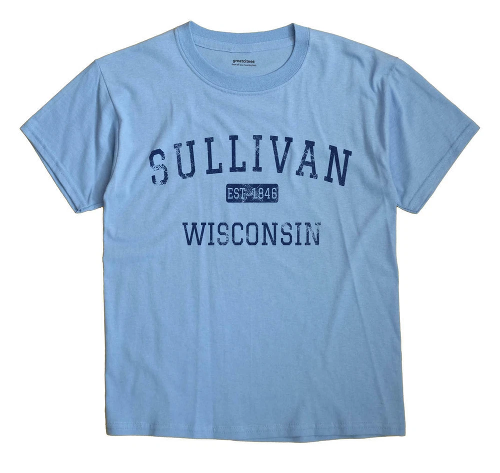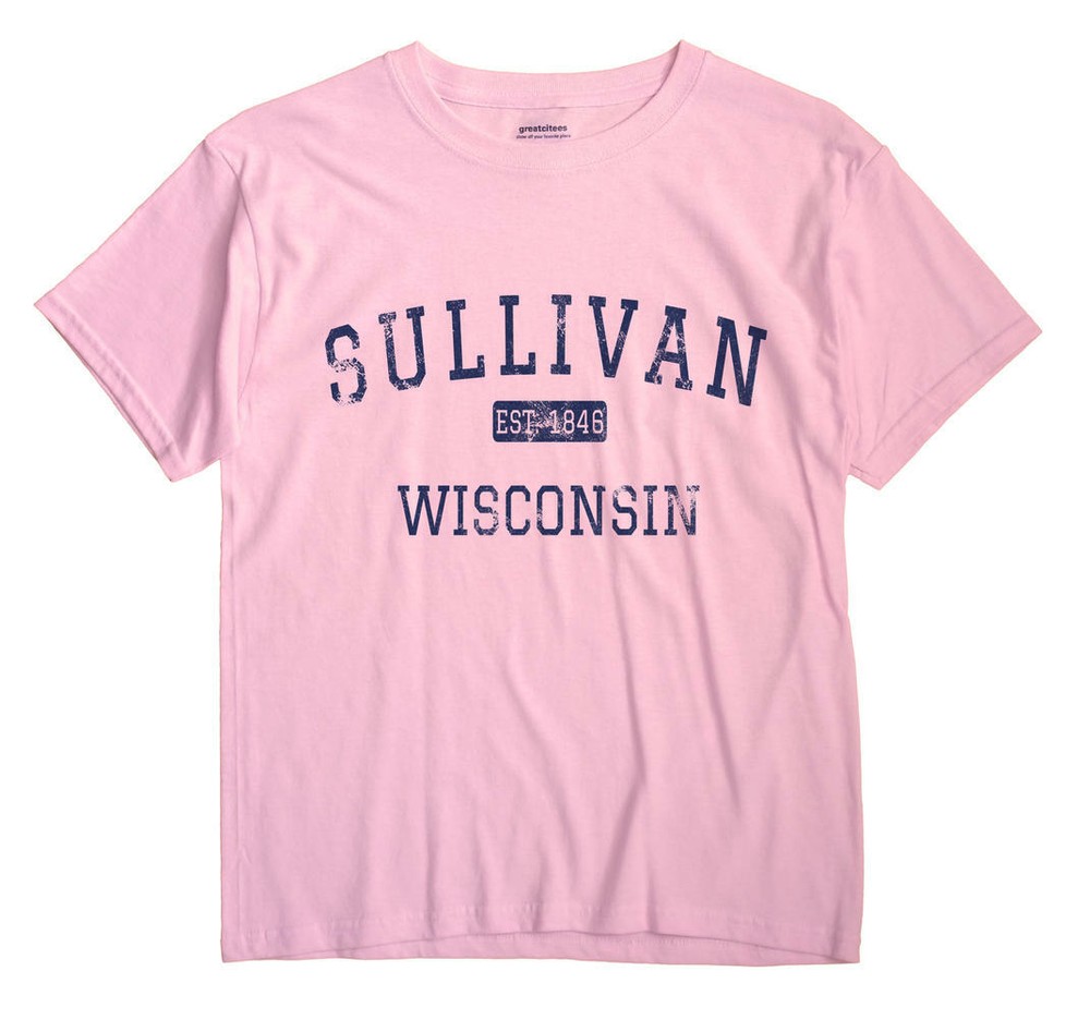Direct to fabric digital print. NOT a transfer. Ink is embedded in the fabric for ultimate wearable comfort. Unisex t-shirt is 100% cotton (grays 90%), preshrunk Hanes or Anvil* Heavyweight 6 oz. with double needle sleeves and bottom hem. Shipping & Handling Orders are shipped within 4-7 business days after payment. US orders are shipped by USPS First Class Mail. International orders are shipped by USPS First Class Mail International. Show off your love for Sullivan Wisconsin WI, while looking cool and stylish with this GreatCitees hometown souvenir t-shirt. This casual and loose fitting tee is guaranteed to become your favorite in no time. We use direct-to-garment printing technology, so the ink is embedded in the fabric for your ultimate comfort. Our unisex t-shirts are 100% cotton (grey 90/10), preshrunk heavyweight 5.5 oz. with double needle sleeves and bottom hem. Perfect as a Wis, Wisc, Jefferson hometown shirt. *On very rare occasions, we may use a different but comparable brand depending on inventory conditions. Available Colors Similar Shirts Click for more Wisconsin Shirts Click for more Sullivan Shirts Click for more Jefferson Shirts VER20AXIS0V2 IDV20SULLIVAN_WI_EST00 TAGV20SULLIVAN0WISCONSIN0WI TAGV20WISCONSIN TAGV20SULLIVAN TAGV20JEFFERSON TAGV20 TAGV200