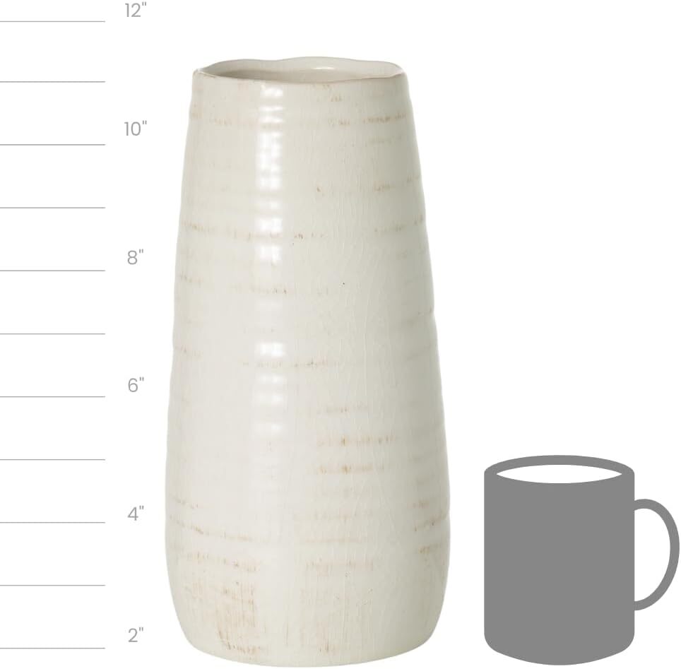 Sullivans Ceramic Boho Vase, Centerpiece Table Decorations, Distressed White Product Details Material: Ceramic Color: Distressed White Brand: Sullivans Product Dimensions: 5"L x 5"W x 11.5"H Shape: Round Vase for Centerpiece Table Decorations- If you're looking for the perfect vase to create a stunning centerpiece- look no further. Standing at almost a foot tall, this off-white ceramic vase, is the ideal home decor accent for any room in your house. This heavy duty vase will look great on your mantle, shelf, coffee table, entryway, surrounded by all of your favorite home decor pieces. Perfect For Special Gatherings and Occasions- Crafted from 100% Ceramic, this tall vase is not only the perfect accent for your home, but is great for wedding reception, bridal shower, or graduation Decor. The trend right, slighty distressed design is sure to add a modern farmhouse feel to your home or event. An Ideal Giftable- This vase is not only a great addition to your home decor collection, it can be a great giftable for numerous occasions. Whether you're looking for a housewarming gift, hostess gifts for the holidays, or a bridal, baby shower or anniversary gift, the versatility of this tall vase is endless. Create a Beautiful Centerpiece – This tall table vase, will fit in with a ton of different styles, whether it’s modern farmhouse, rustic, classic charm, boho, or elegant yet trendy. It also be used for a ton of different occasions- the versatility of this ceramic vase makes it perfect not only as a home décor accent, but for weddings, bridal or baby showers, and even makes a great gift. Bring this vase out for your next gathering for an instant, stunning centerpiece. Packaged For a Safe Delivery-This vase is packaged securely in Styrofoam to ensure a safe delivery, and avoid breakage in transit. This vase comes in a sturdy box, ready to be wrapped and gifted to a loved one!