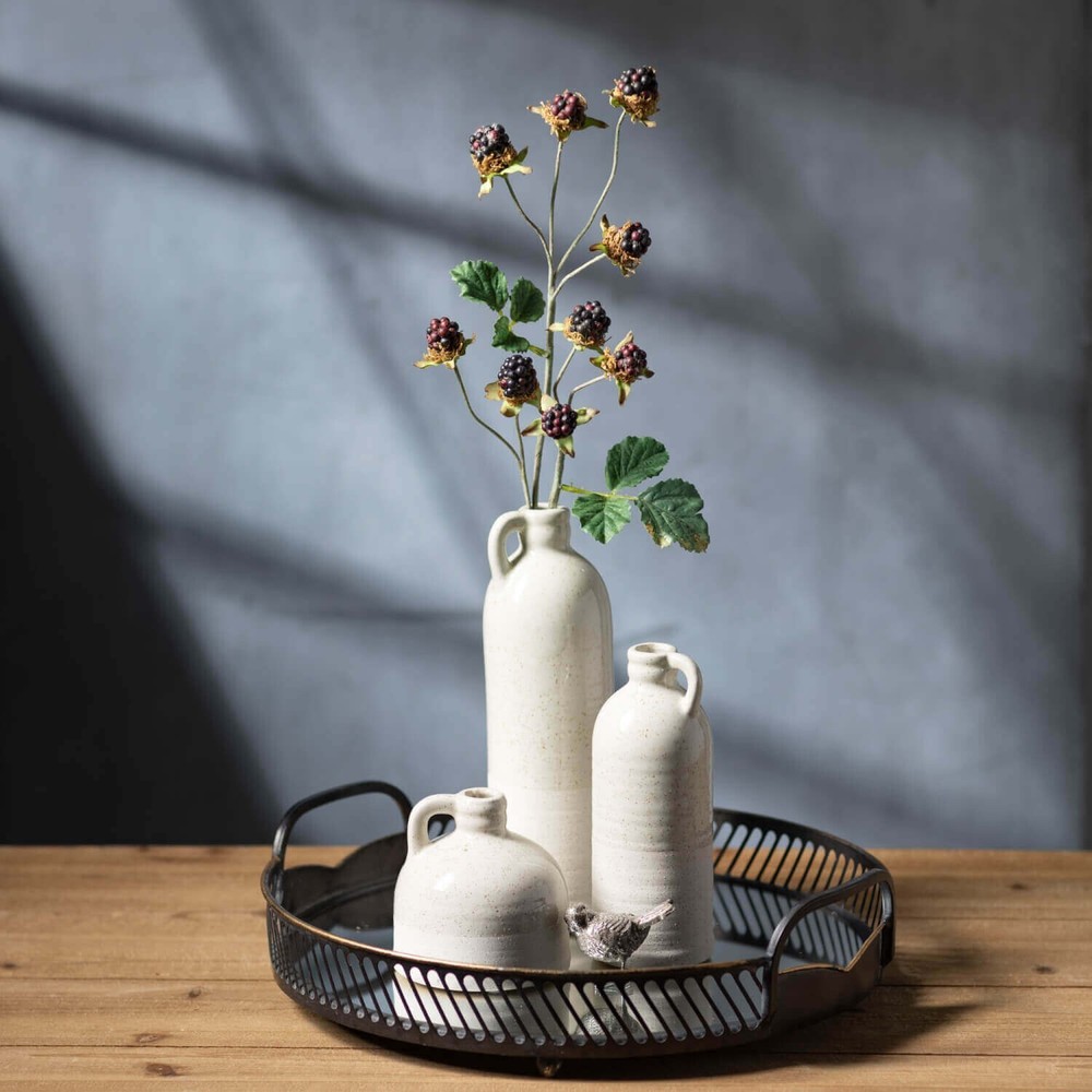 Enhance the beauty of your home decor with this stunning set of 3 ceramic jug vases from Sullivan. These vases come in 3 different heights of 10"H, 7.5"H, and 4"H, making them perfect for displaying flowers or as decorative pieces on their own. The vases feature a classic off-white color and are made of high-quality ceramic material, ensuring they will last for years to come. The Sullivan brand is known for its excellent quality and attention to detail, making these vases a great addition to any collection. Whether you're a fan of decorative vases or simply looking for a statement piece for your home, these Sullivan vases are sure to impress. Dimensions: 4"L x4"W x4" 3"L x3"W x7" 3"L x3"W x10"