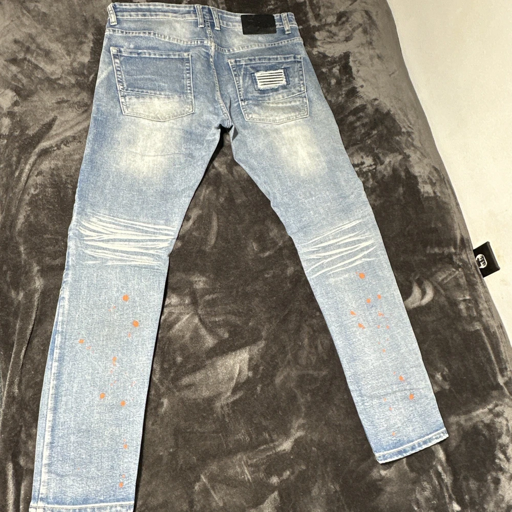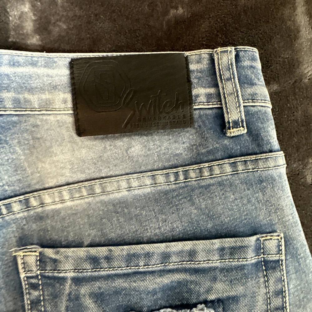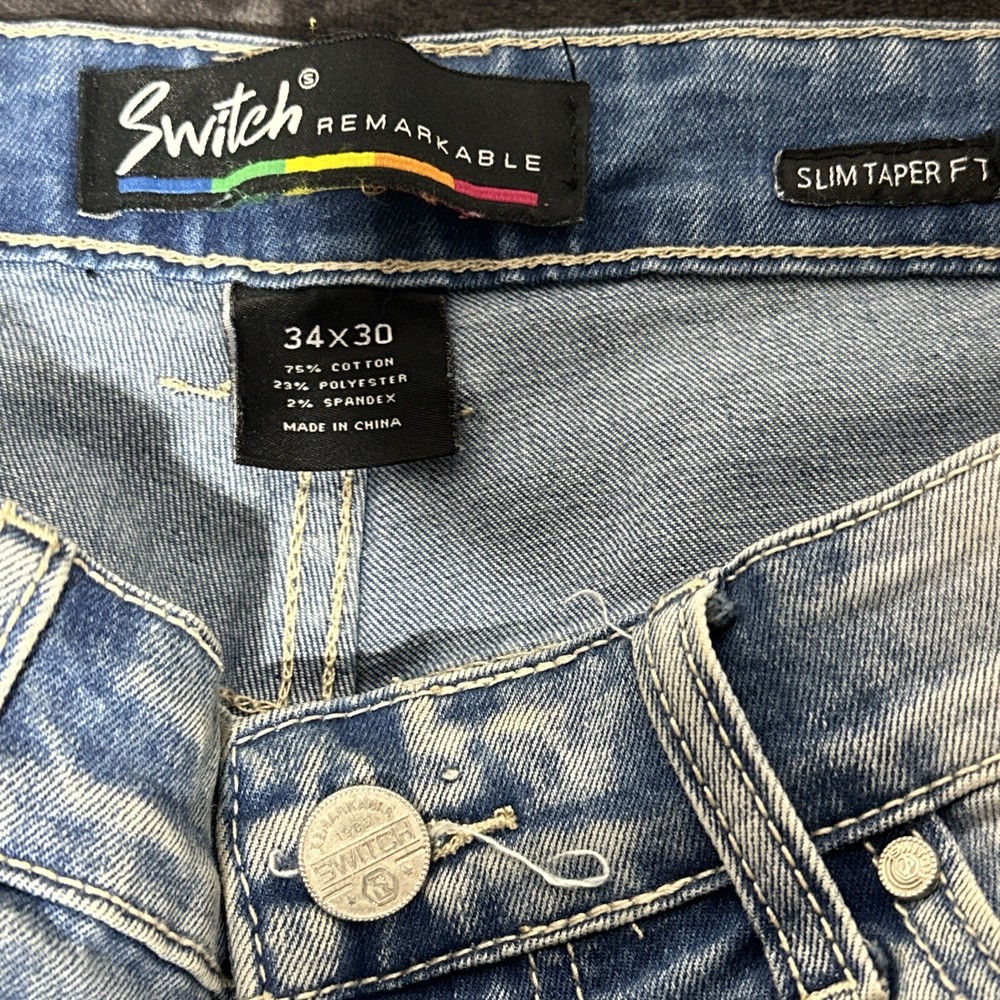 Men’s size 34X30. Little signs of wear overall good condition see photos. Look stylish and trendy with these Switch Remarkable men's jeans in size 34x30. The jeans feature a 5-pocket design with a zip closure and belt loops for a perfect fit. The denim fabric is a light wash with yellow spots that give it a fun and playful look. These slim-fit jeans have a mid-rise of 10-12 inches and a skinny style with a solid pattern. The fabric is a comfortable cotton blend with a stretch feature that allows for easy movement. The jeans are machine washable and easy to maintain for their long-lasting durability.