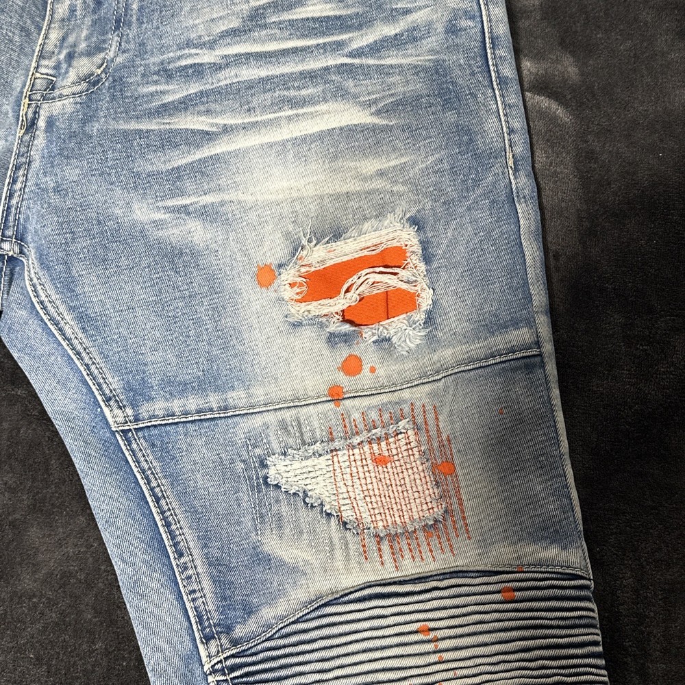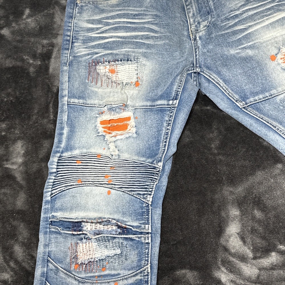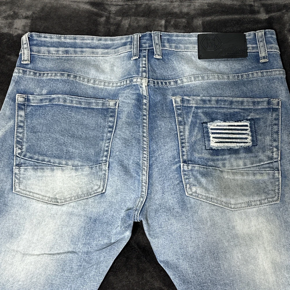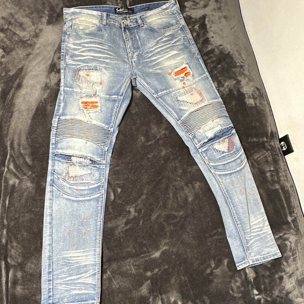 Men’s size 34X30. Little signs of wear overall good condition see photos. Look stylish and trendy with these Switch Remarkable men's jeans in size 34x30. The jeans feature a 5-pocket design with a zip closure and belt loops for a perfect fit. The denim fabric is a light wash with yellow spots that give it a fun and playful look. These slim-fit jeans have a mid-rise of 10-12 inches and a skinny style with a solid pattern. The fabric is a comfortable cotton blend with a stretch feature that allows for easy movement. The jeans are machine washable and easy to maintain for their long-lasting durability.