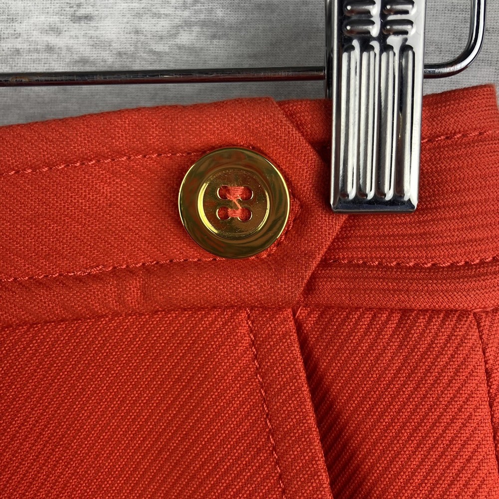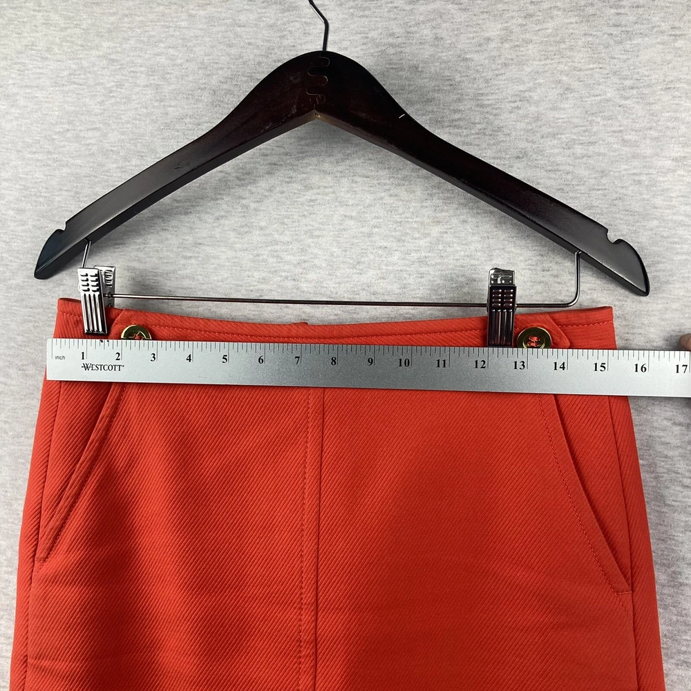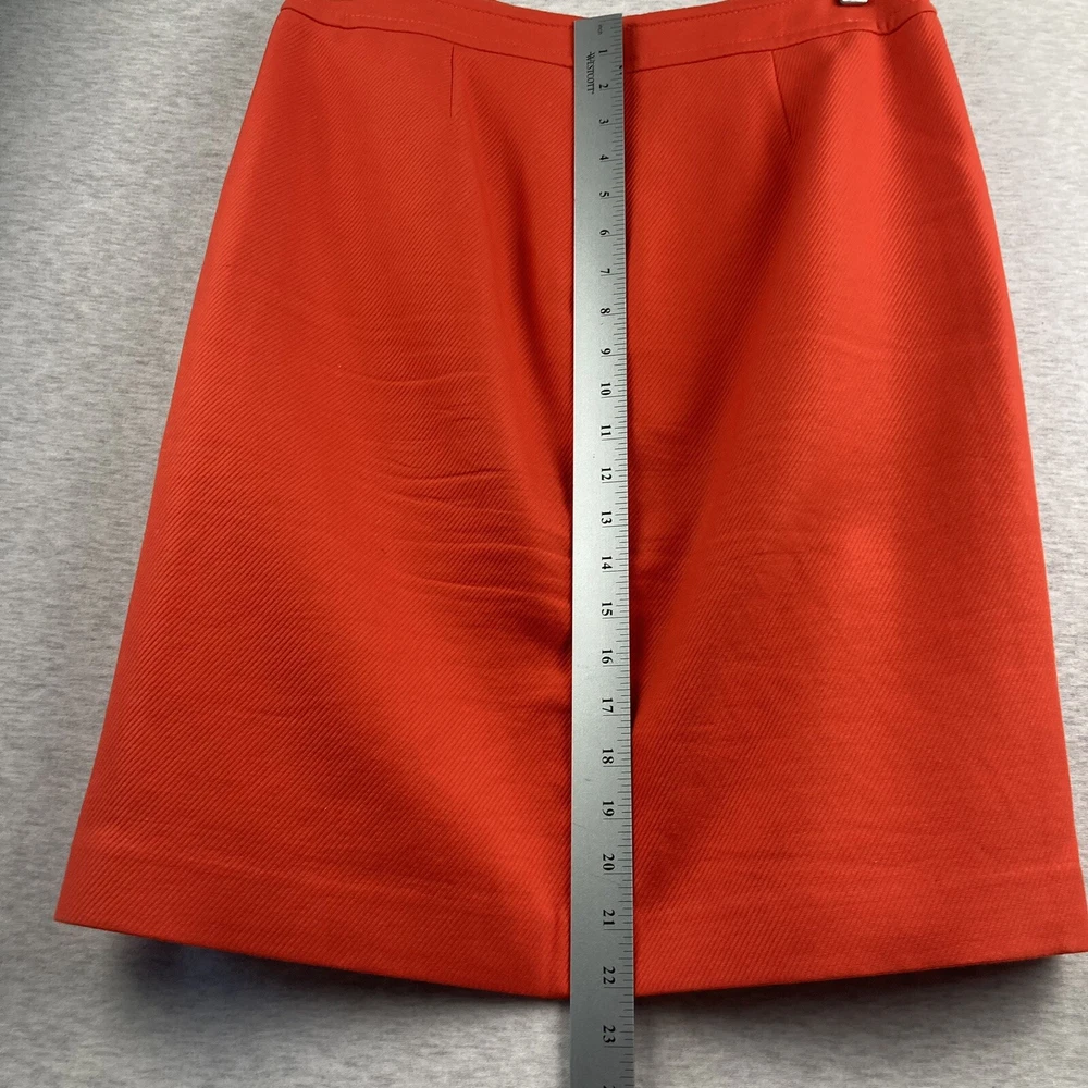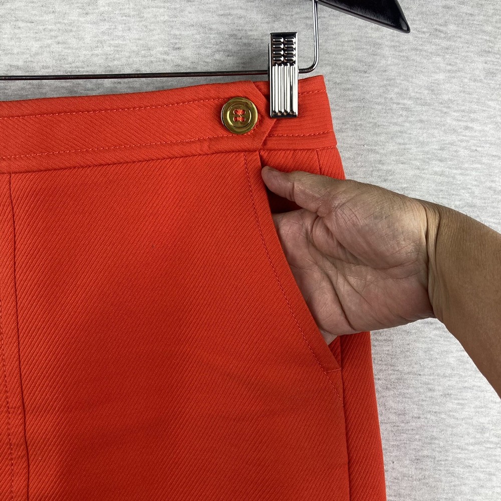 This beautiful Talbots skirt is a must-have for any wardrobe. The vibrant orange color and gold button accents are sure to make a statement. Made from high-quality cotton and fully lined, this knee-length skirt is perfect for casual wear, workwear, or business attire. The skirt features a zip closure and pockets, making it both stylish and functional. It's a straight and a little bit of a pencil style, with a solid pattern and colorful theme. The fabric type is cotton, with “dry clean” care instructions. The skirt is a size 4 and is of regular size type. Please inspect all photos as they are part of the items description. Item will ship at sellers discretion using USPS.