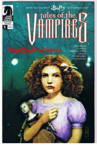 TALES of the VAMPIRES #5, NM+, Joss Whedon, Buffy, 2003, more in store TALES of the VAMPIRES #5...( 2003 series...).... Name of Comic(s)/Title?: TALES of the VAMPIRES #5...( 2003 series...).... Publisher: Dark Horse Comics...... Art by/Featuring/Stories?: Featuring an issue of TALES of the VAMPIRES...Artist(s): Alex Sanchez, Derek Fridolfs, Tim Sale, Cliff Richards....Writer(s): Joss Whedon, Jane Espenson, Sam Loeb, Brett Marrhews...Cover art by ; Brian Horron....Rated PG13+ to Mature Reader...Story(s); "Tales of the Vampires, & Some Like it Hot, & Numb.."....!....Based on the TV sereis, Buffy the Vampire Slayer, created by Whedon... Grade of item? : This issue is in NEAR MINT+ (unread) condition...... Created when? : 2003 series, made in 2004.... Front Cover description : As new... Back Cover description : As new... Page quality description : As new... Tape or writing?: No... How are staples?: Staples are secure.... Flat & supple : Yes.... Don't get caught napping...Will come bagged & boarded... ...1st printing!.... ...Lots more TALES of the VAMPIRE, BUFFY the VAMPIRE, Whedon, Tim Sale, MOVIE/TV & INDEPENDENT items in our store. : Here! Be sure to check out all of our current on-going auctions!! Lots of great product at affordable prices!!! Bookmark our listings with (control + D). Lots more coming in the next few weeks!!!! Check out the scan(s). If you like this? Our store name is HighQualityComics...aka HQComics... We have been doing mail-order since 1988. We guarantee Absolute Satisfaction on All Orders! Shipping in a box. Combine auctions to save on postage. INTERNATIONAL CUSTOMERS : Email us for international shipping rates & acceptable ways to pay. INTERNATIONAL CUSTOMERS : Email us for acceptable ways to pay and shipping options, before you place an order. Thanks! This listing created with GLETech Multiple Selling Channel tools.