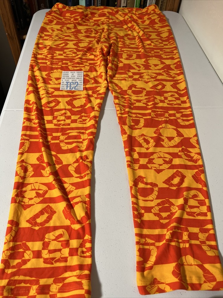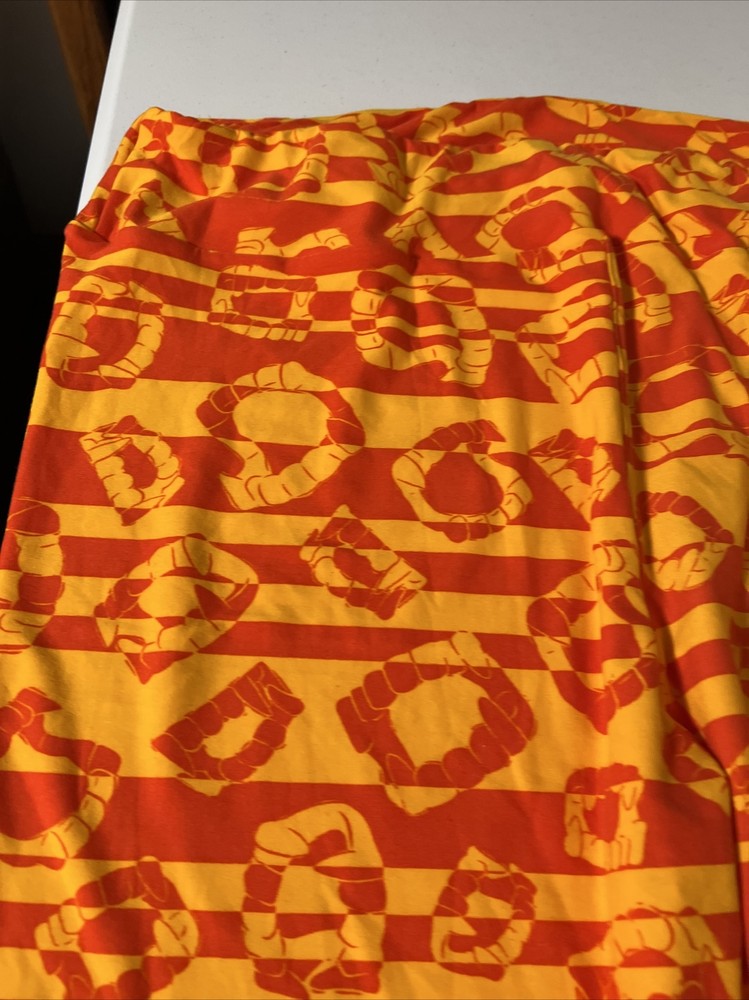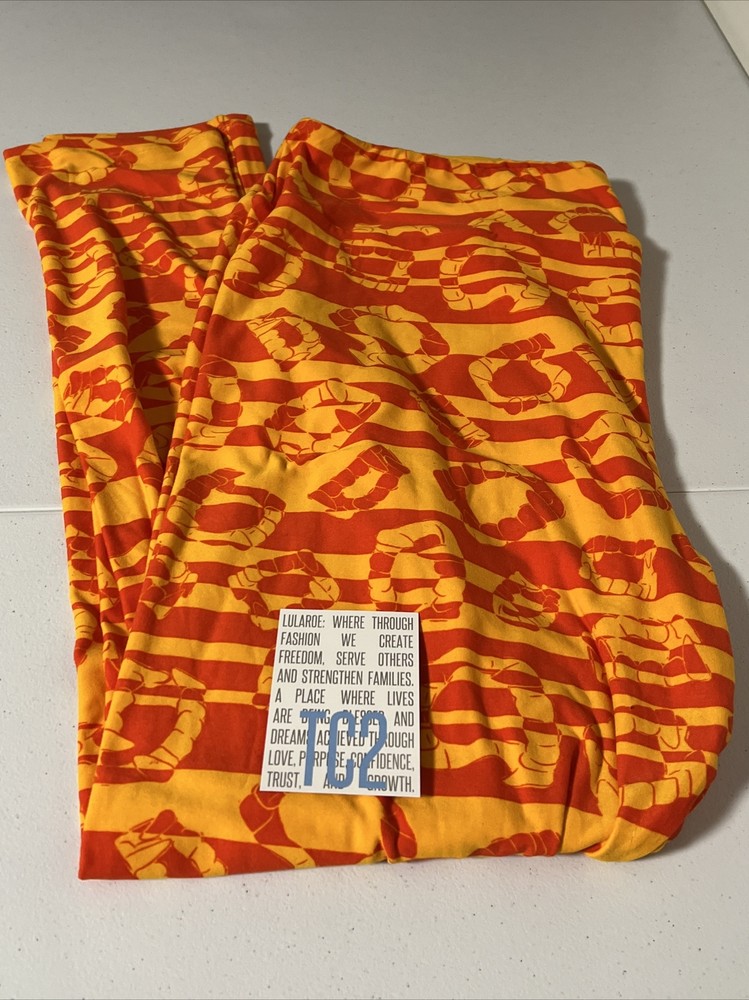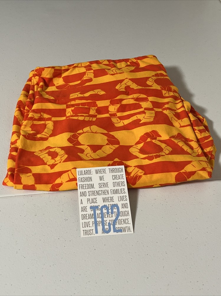 TC2 Lularoe Leggings, Orange, yellow vampire teeth NWOT. Condition is "New without tags". Shipped with USPS First Class. Please see photos as they are part of the description. Please message me with any questions. Tags are not attached and I generally do not mail with tags. Please know your sizing, and differences in sizing between newer and older styles and countries of manufacturing. Leggings made in China run smaller, you may need to size up. Smoke free home. Thanks for shopping!