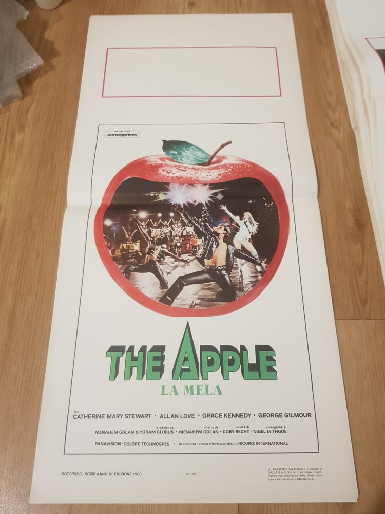 Original ITALIAN movie poster - Title: THE APPLE - Year: 1980 - From: Menahem Golan - Size: Approximately 33x70cm (13x28 inches) - Casting: Catherine Mary Stewart Allan Love Grace Kennedy George Gilmour Joss Ackland Vladek Sheybal Ray Shell Good condition, folded Safery send with protection WE DO NOT SELL REPRODUCTION, ALL OUR POSTERS ARE ORIGINAL OR OFFICIAL REISSUE