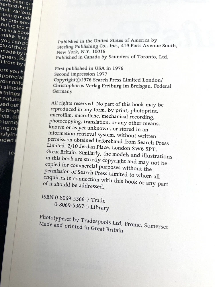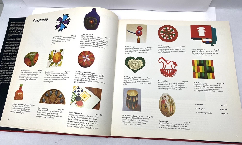 This vintage craft book is a gem! Packed with creative ideas and timeless projects, it's in excellent condition with clear, inspiring instructions. The hardcover is sturdy, and the illustrations are beautiful. Perfect for craft lovers looking for classic inspiration—plus, free shipping is a great bonus! Highly recommend for anyone who enjoys handmade artistry.
