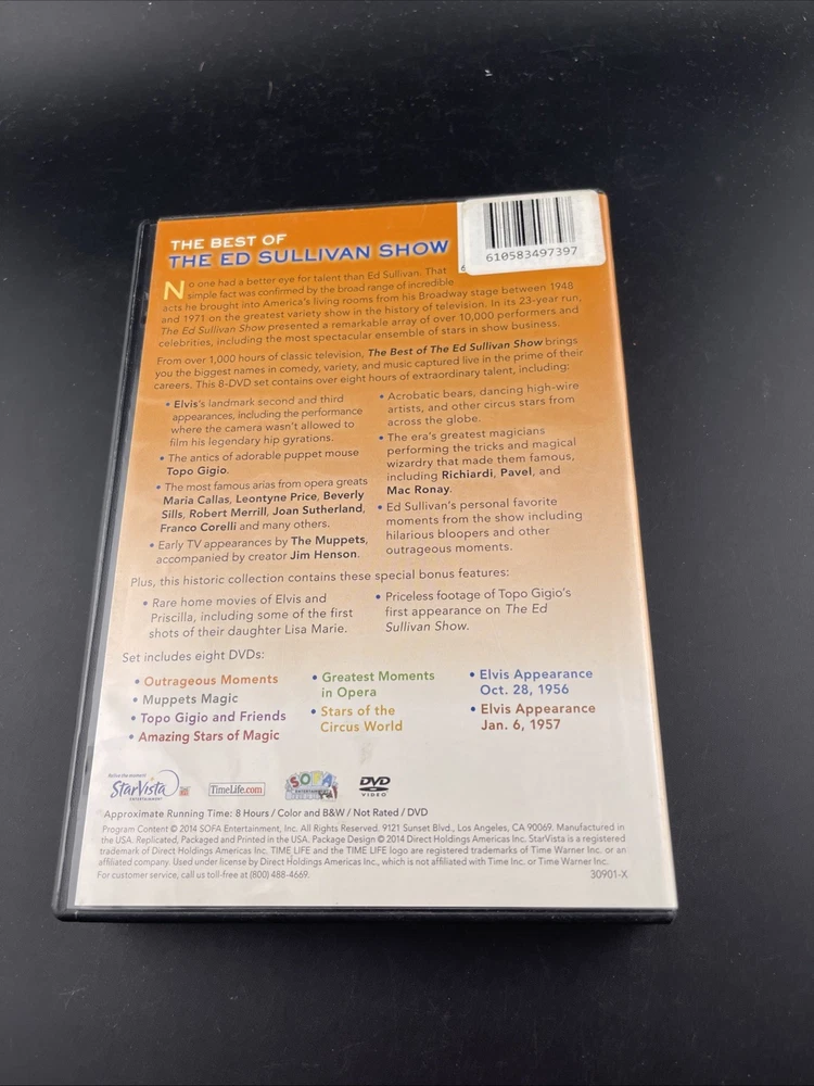 Experience the golden age of television with "The Best of the Ed Sullivan Show (8-discs Collector's Set, 2014)." This comprehensive DVD set brings together iconic performances from a variety of celebrated artists, including Elvis Presley, The Muppets, Maria Callas, Topo Gigio, Beverly Sills, and Joan Sutherland. Relive the timeless moments from this classic variety show, which aired from 1948 to 1971, on DVD with English language options. Perfect for fans of classic TV and collectors alike, this DVD set is a must-have addition to any collection.