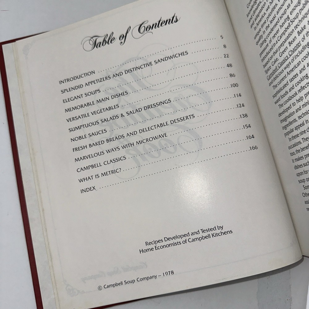 THE CREATIVE COOK - CAMPBELL SOUP COMPANY HARDCOVER COOKBOOK 1978 Recipes developed & tested by HOME ECONOMISTS of Campell Kitchens ILLUSTRATED WITH FULL COLOR PHOTOGRAPHS Photographs are of the actual item you will receive so please look closely to see actual condition - As is. No attempt to cover or hide blemishes is ever done on items we list. Buy with confidence that the item you see is the item you will receive. Please Follow Us to See Other Great Items Listed Weekly! MaxStuf Comics is proud to offer these items alongside our other listings. We have always prided ourselves on being caretakers of treasures of all types for the next generation of collectors. To the greatest extent possible, these books are just the latest in that long line, and we hope you enjoy reading them.