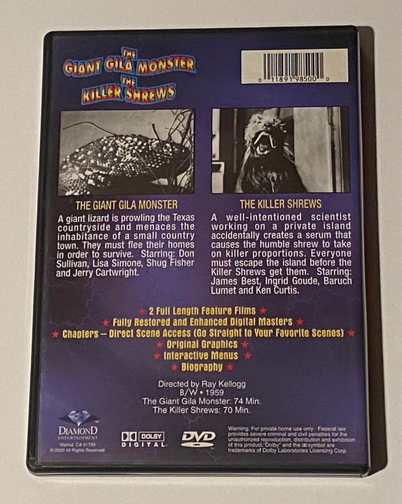 THE GIANT GILA MONSTER + THE KILLER SHREWS (DVD) DOUBLE FEATURE LIKE NEW CONDITION Take a good look at all of the pics, what you see is what you get. I ship in a oversize box and I pack very well. If you have any questions please private message me I will be more than happy to answer. I am always open to offers, please keep in mind this is an active sale and could be sold by the time I get back to you. Thanks for looking International Buyers: Orders outside the US will be shipped using the eBay Global Shipping Program, and do not qualify for any combined shipping discounts. Buyers are responsible for paying the appropriate customs charges. Do not ask us to change the declared value, as it is illegal. Shipping charges are handled by the eBay Global Shipping Program. This program is handled directly by eBay, so we do not have any control over the prices you are charged for shipping. Buy with confidence! I do my best to provide the most accurate description, as well as providing clear pictures, please don’t hesitate if you have questions. client satisfaction is important to me, therefore please don’t hesitate to contact if all is not to your complete satisfaction. Thank you kindly