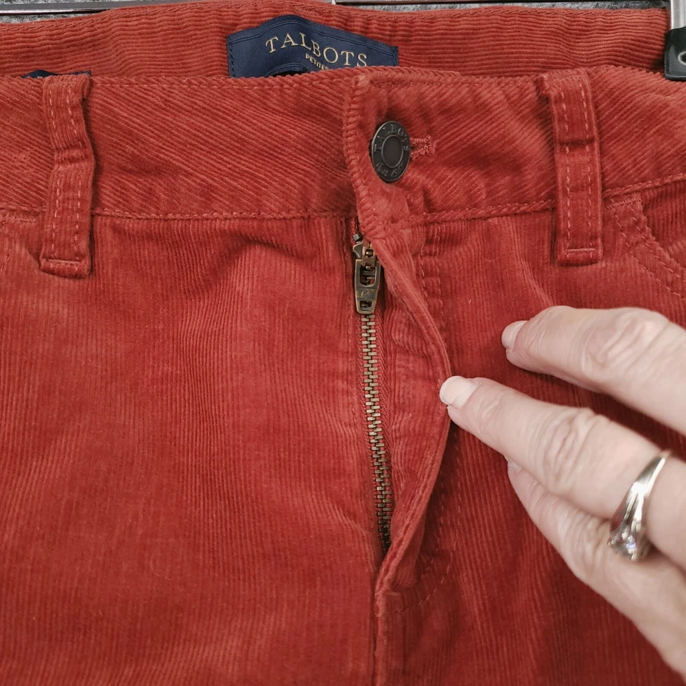 Talbots Women's 8P Petite Orange Corduroy Straight Stretch Pants Mid Rise