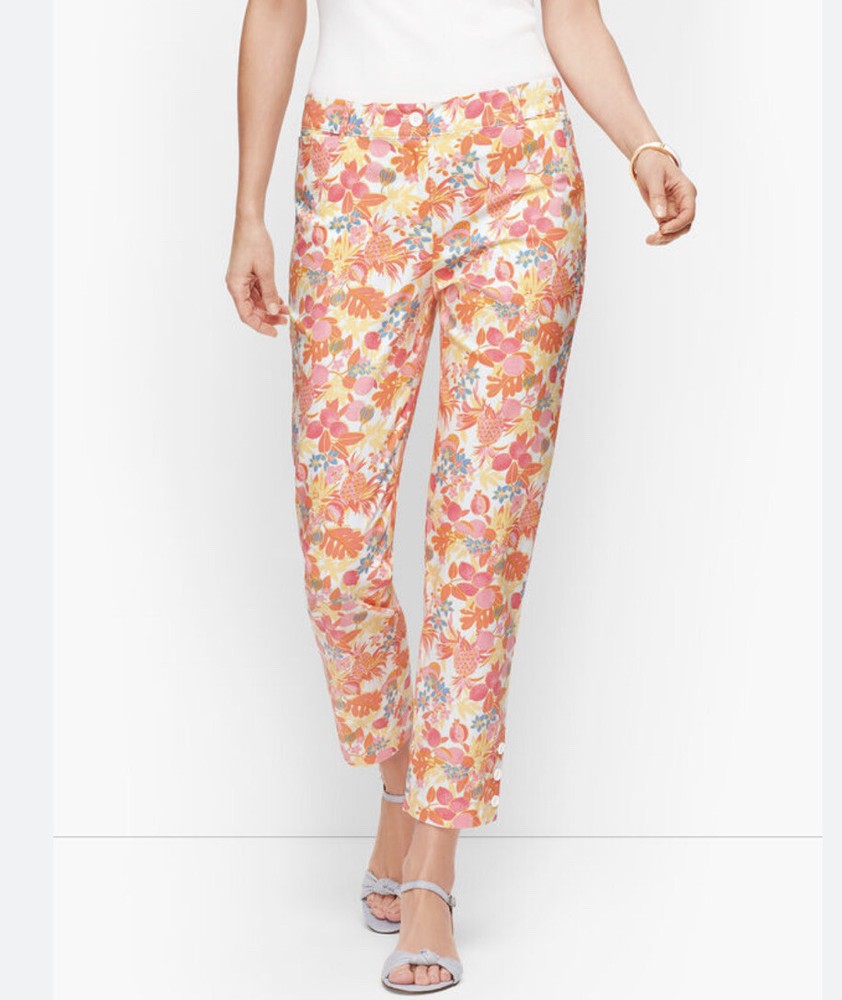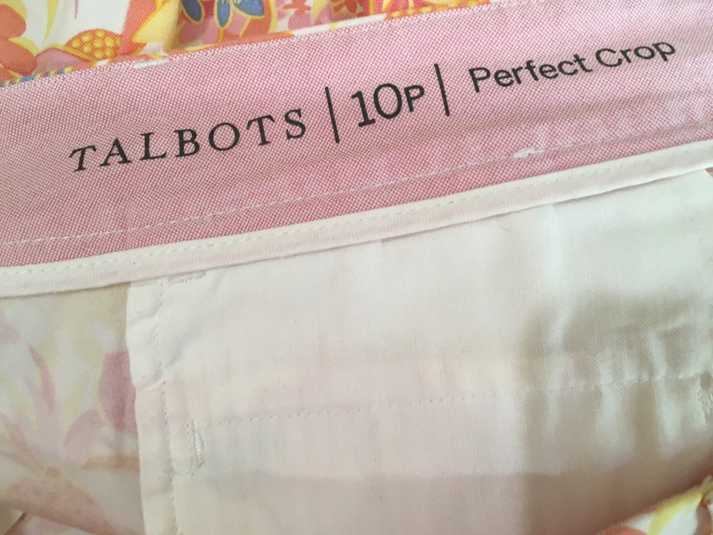 Talbots Mid Rise Perfect Crop curvy Pants Womens Casual. Description Brand : talbots Size : 10P waist 34” inseam 22” hip 40” length 32” Color : white pink orange Material : cotton spandex Condition : it has tiny stain Mid rise Pockets 976/ 236 Tag beach spring summer minimalist classic lagenlook American everyday coastal momcore grandmother city cropped Capri pants blue chambray spring summer fall career workwear business office fashion favorite everyday wardrobe Shipping Item will shipped out in 1-2 days after full payment received. USPS first class 2-5 business days. We will only ship the item to your PayPal confirmed address, so please make sure your shipping address is correct before you buy item. Return Policy 1. We are committed to give you the best customer service possible. If the item disappoints you for any reason, please contact us. 2. We want to make sure you are happy with our item. If you want to return the item for any reason, please contact us within 7 days from the delivery date and we will give you a refund. Only unused, undamaged and original condition item can be. 3. Return shipping paid by Buyer Feedback We hope you can give a good feedback when you received a product. Please do not simply give a bad feedback before a problem solve! * PLEASE NOTE THAT SLIGHT COLOR DIFFERENCE SHOULD BE ACCEPTABLE DUT TO THE LIGHT AND SCREEN * SO MAKE SURE YOU HAVE CHECKED MANUAL MEASUREMENT BEFORE PURCHASE