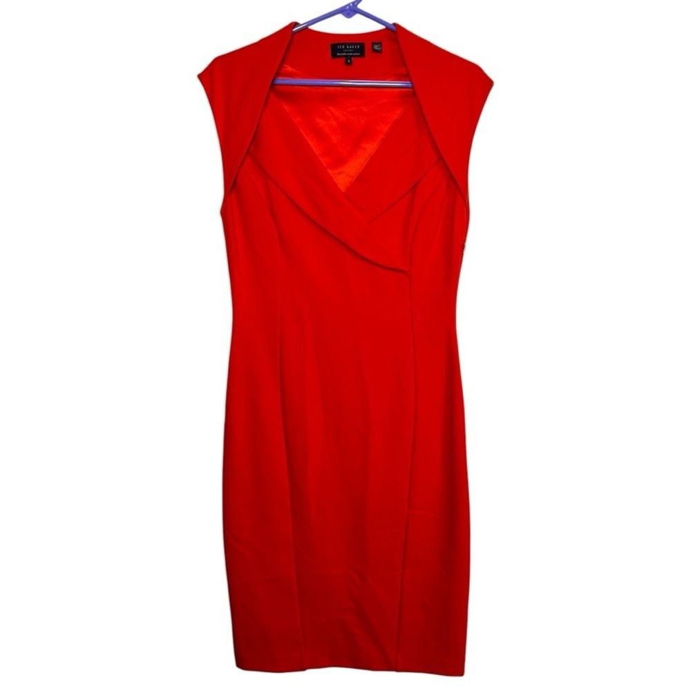 Ted Baker Orange Shift Dress Size 8 Formal Dressy Career Work Great preowned condition still has plastic on zipper pull Measurements laying flat Pit to pit 16 inches Waist 14.5 inches Shoulder to bott...