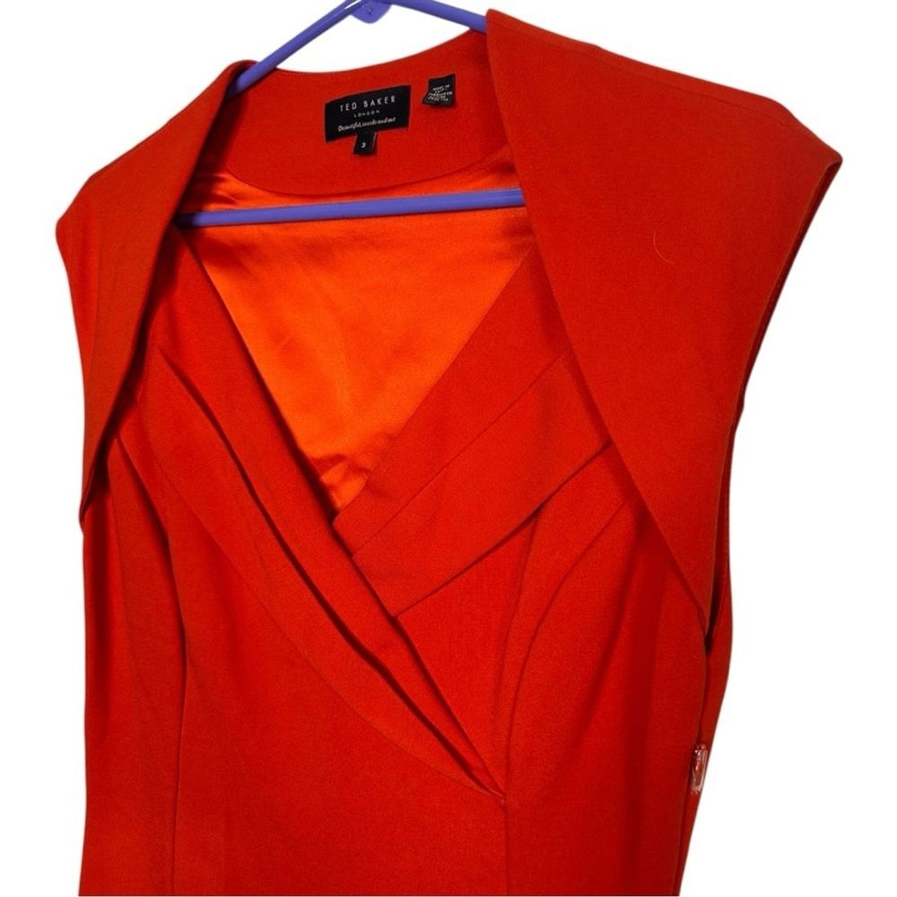 Ted Baker Orange Shift Dress Size 8 Formal Dressy Career Work Great preowned condition still has plastic on zipper pull Measurements laying flat Pit to pit 16 inches Waist 14.5 inches Shoulder to bottom hem 38 inches
