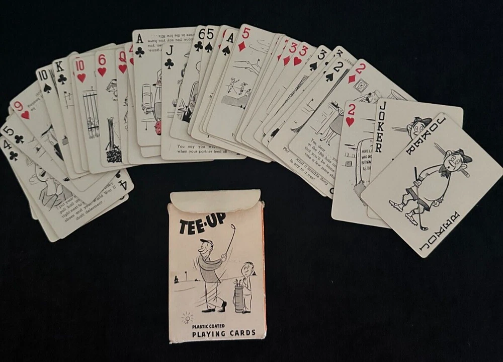 Tee Up Creative Playing Card Co Golfing Funny Card Deck Novelty Vintage 1950s Small tear on the box, see photos Enjoy FAST shipping to all 50 states of the USA. Calculated shipping rates for international bidders. Visit my Store for more cool collectibles! https://www.ebay.com/str/gamegodd Photos reflect actual condition of items. I do not take returns or offer discounts after sale. Do not bid if you are unsure.