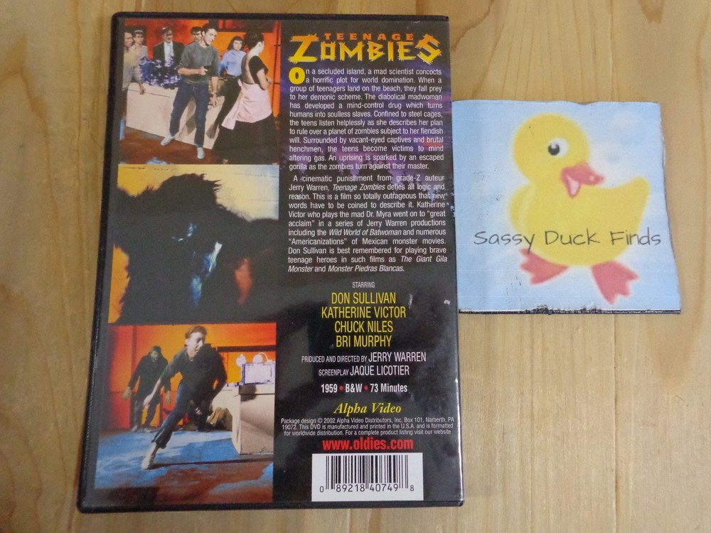 DVD Movie * Teenage Zombies * 1959 - Black and White * Starring Don Sullivan, Katherine Victor, Chuck Niles, Bri Murphy * 2002 Alpha Video Condition: Very Good. Fly in and visit us at Sassy Duck Finds...
