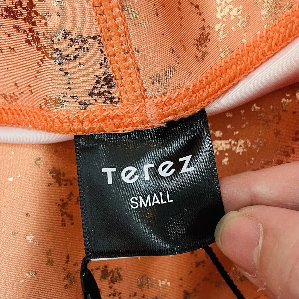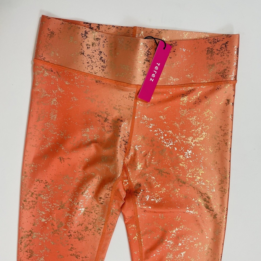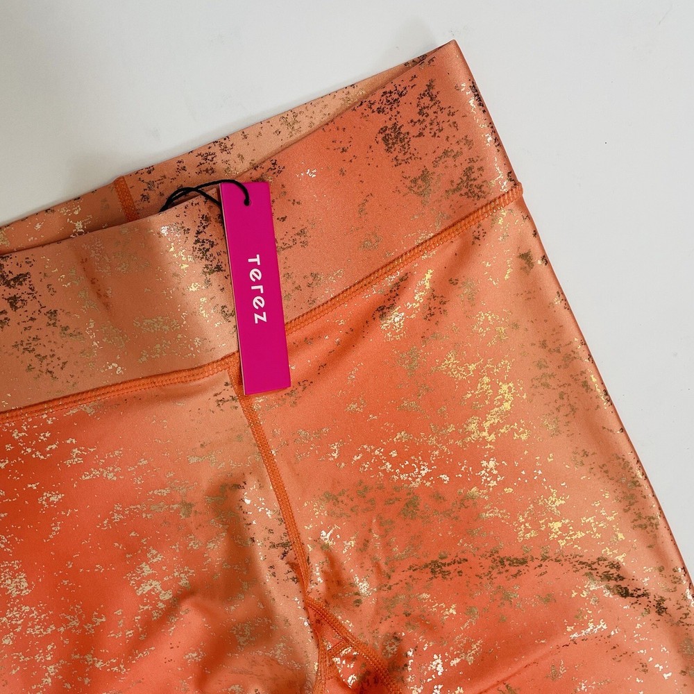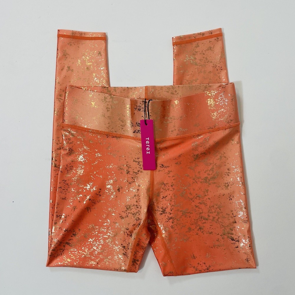 Terez New Balayage Foil Orange Sherbert Leggings Small Womens Mid Rise Comfort New with tags Comfortable mid rise Medium compression Sweat wicking Best for running and everyday activities Women's size small Waist across shy of 14” Front rise 8.5” Inseam 25” Fast shipping