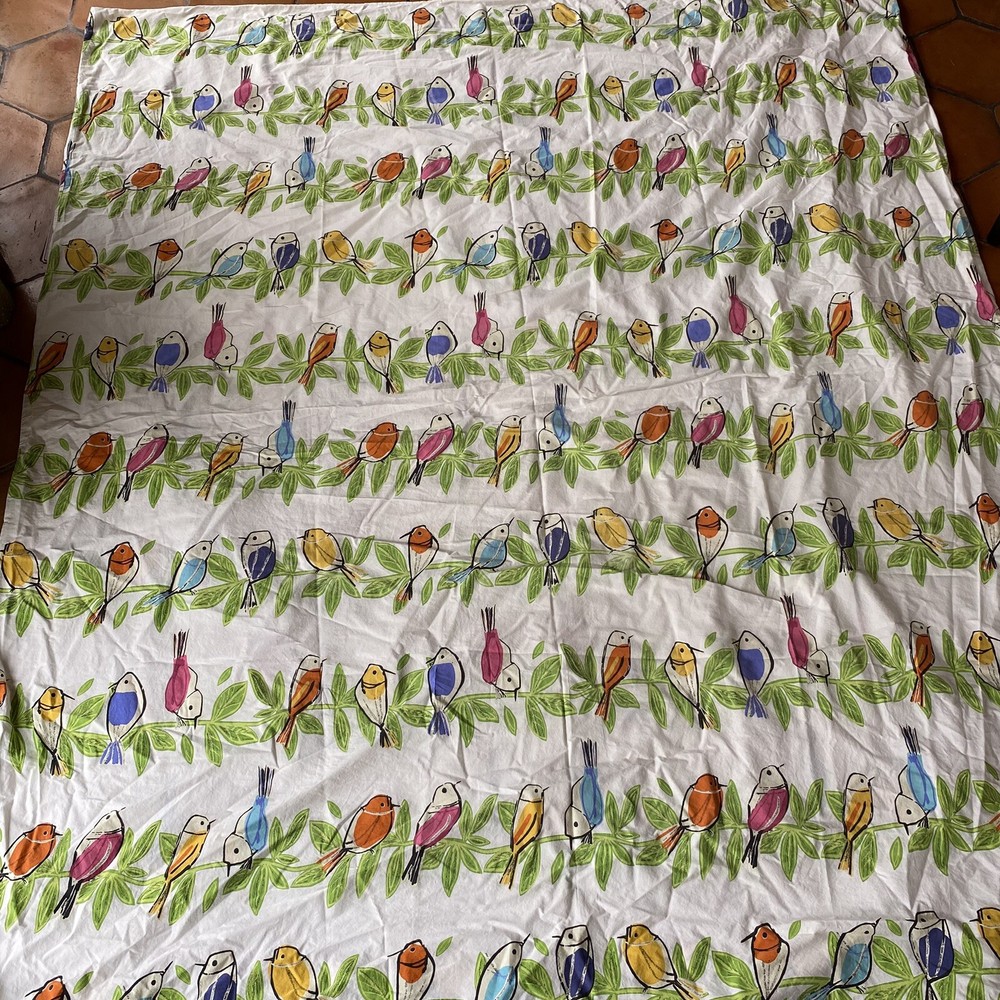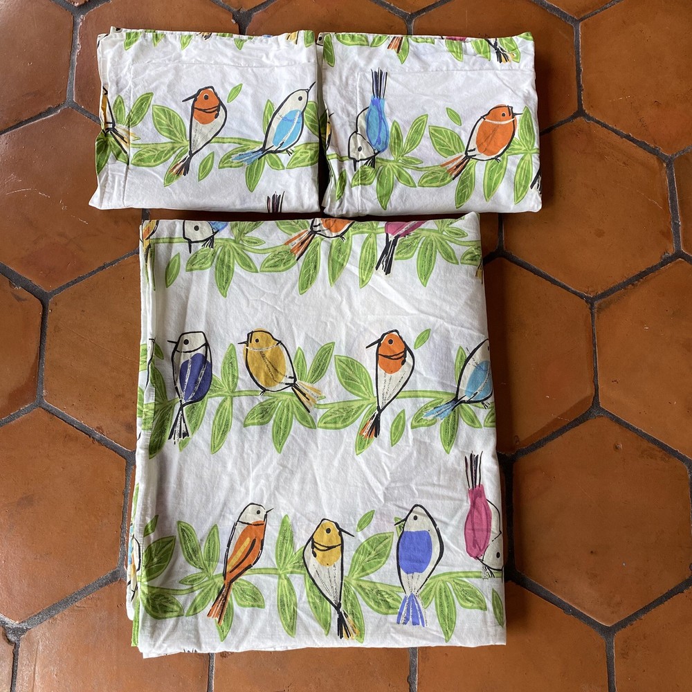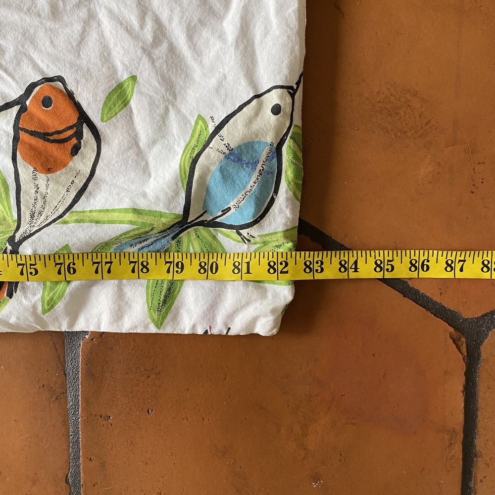 The Company Store offers a whimsical and nature-inspired queen duvet cover set that is perfect for kids, teens, and adults. The set includes a rectangular-shaped duvet cover and two shams with a birds pattern. The set is made of 100% cotton and is machine washable and tumble dry. The button closure type adds to the style of the set. This artsy and colorful set is perfect for any bedroom and adds a touch of whimsy and nature to it. The set is also breathable and features a birds pattern that is perfect for those who love nature. The set is easy to care for and maintain its quality.