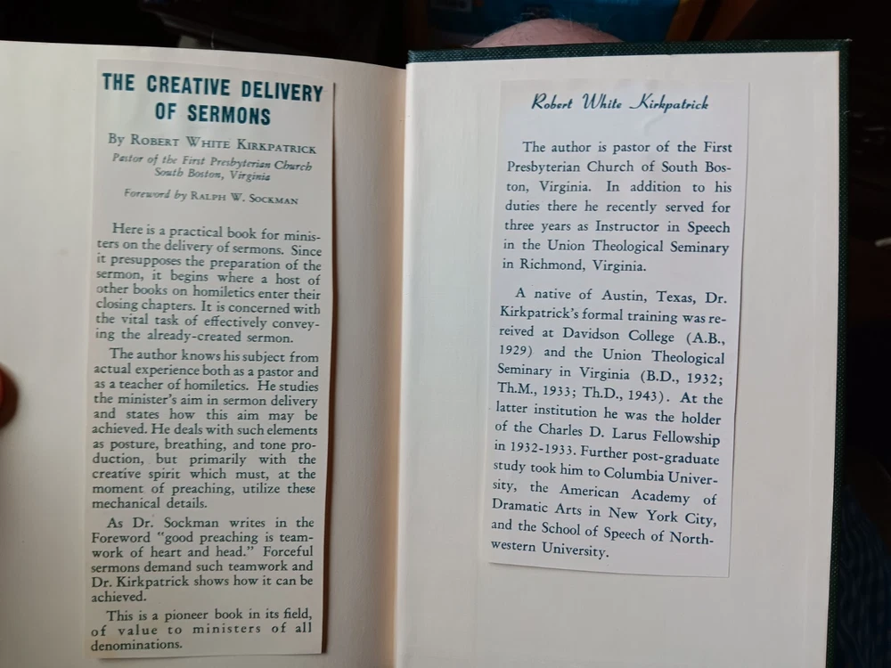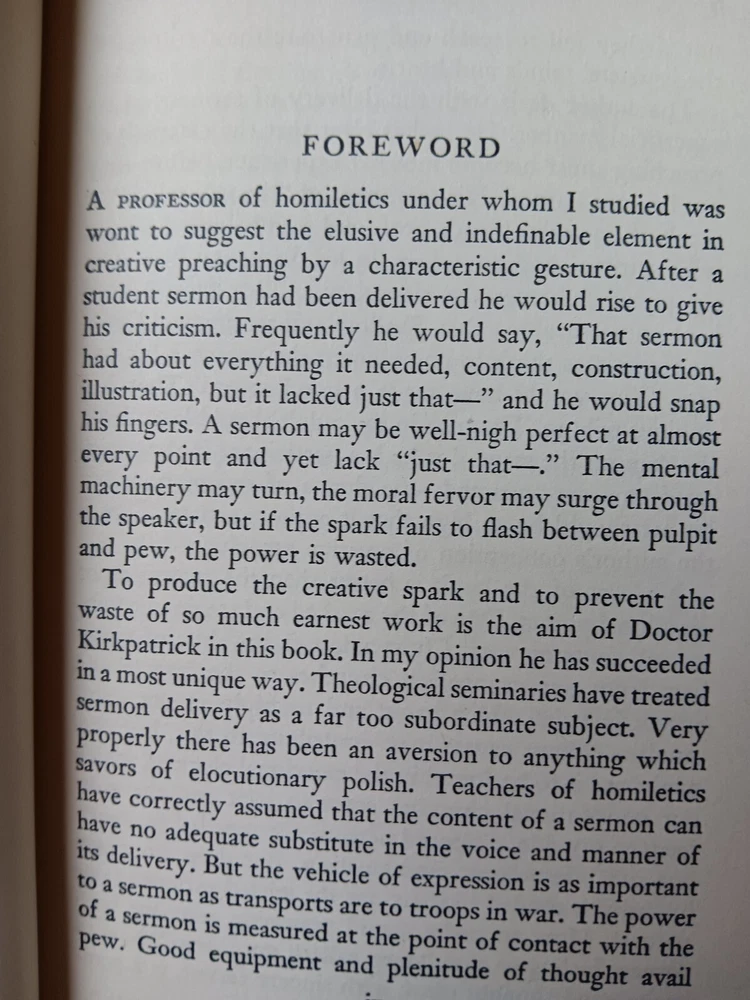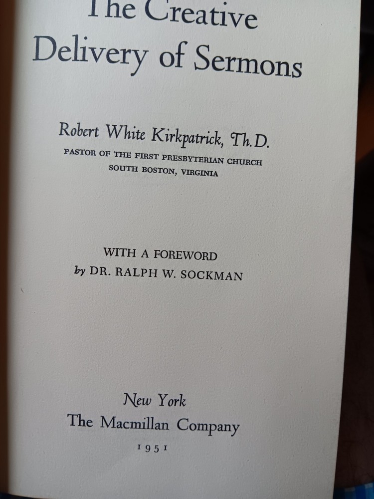 This vintage hardcover book titled "The Creative Delivery of Sermons" by Robert White Kirkpatrick is a great addition to any religious or spiritual book collection. With its publication year in 1951, it offers a unique insight into the art of sermon delivery that still holds value today. The 232-page book is illustrated and features the author's expertise on the topic of Christianity and sermons. Despite being an ex-library book, it is in acceptable condition and suitable for reading. Get your hands on this nonfiction narrative on the creative art of sermon delivery without delay! The book has underlining and marginal notes, which are not mine but a previous owner. They are edifying and useful.