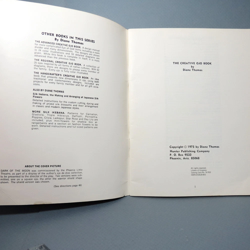 Paperback, good condition as picture, handling wear to cover including a small tear at the bottom, crease at bottom right that extends through pages Immerse yourself in the art of creating with "The Creative Ojo Book: A Comprehensive Handbook for the Imaginative Crafting of the Eye of God Talismans" a vintage guide to the esoteric and the enchanting. Authored by Diane Thomas and published in 1975 by Hunter Publishing Company, this trade paperback is an invitation to explore the realms of needlework and crafts. It's an activity book that transcends the ordinary, offering readers a journey into the mystical through the lens of the 'Eye of God' talisman. With 52 pages filled with color photos, diagrams, and illustrations, this nonfiction gem caters to both young adults and adults alike. It's a treasure trove for enthusiasts of leisure, hobbies, and lifestyle genres, providing a rich tapestry of knowledge for those looking to embellish their creative vocabularies. Whether you're a novice or a seasoned craftsperson, this book serves as a guiding light to unlock your imaginative potential.