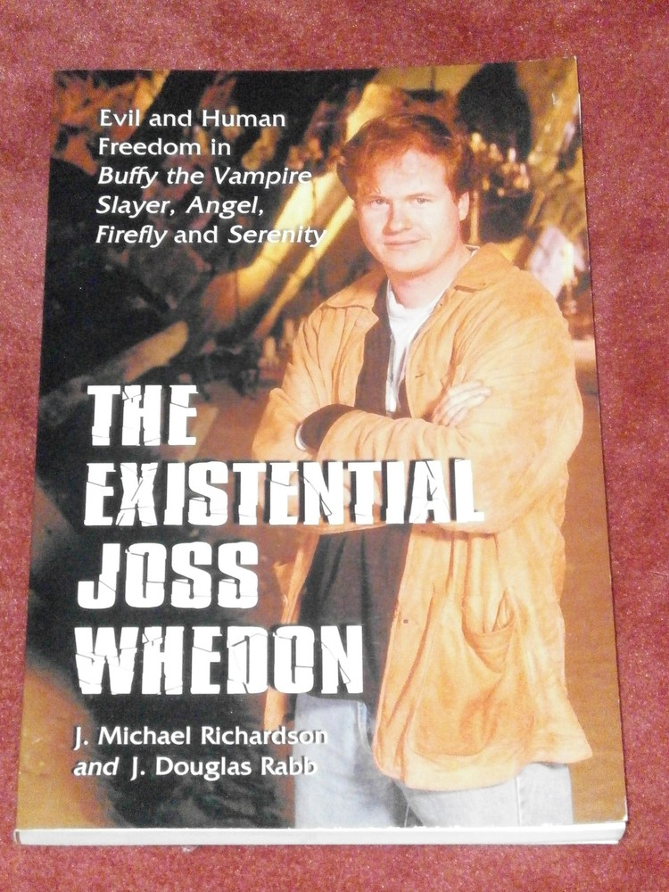 This is The Existential Joss Whedon: Evil and Human Freedom in Buffy the Vampire Slayer, Angel, Firefly and Serenity, published in 2007 by McFarland Books. Like most of their books, it is a text designed for scholarly use but written to be accessible and interesting to someone casually interested in the topic. The book was co-written by J. Michael Richardson and J. Douglas Rabb of Ontario, Canada. From the back: This study examines the major works of contemporary American television and film screenwriter Joss Whedon. The authors argue that these works are part of an existentialist tradition that stretches back from Sartre through Dostoevsky. Both Whedon and Dostoevsky, for example, argue that in each and every one of us "a demon lies hidden." Whedon personifies these demons and has them wandering about and causing havok. Dostoevsky treate the subject only slightly more seriously. Chapters cover such topics as Russian existentialism and vampire slayage; moral choices; ethics; Faith and bad faith; constructing reality through existential choice; some limitations of science and technology; love and self-sacrifice; love, witchcraft, and vengeance; soul mates and moral responsibility; love and moral choice; forms of freedom; and Whedon as moral philosopher. .................................... Shipping combined for multiple purchases. Delivery confirmation included on all domestic packages.