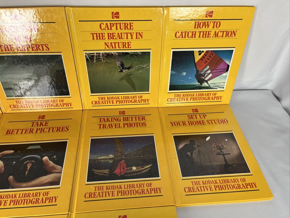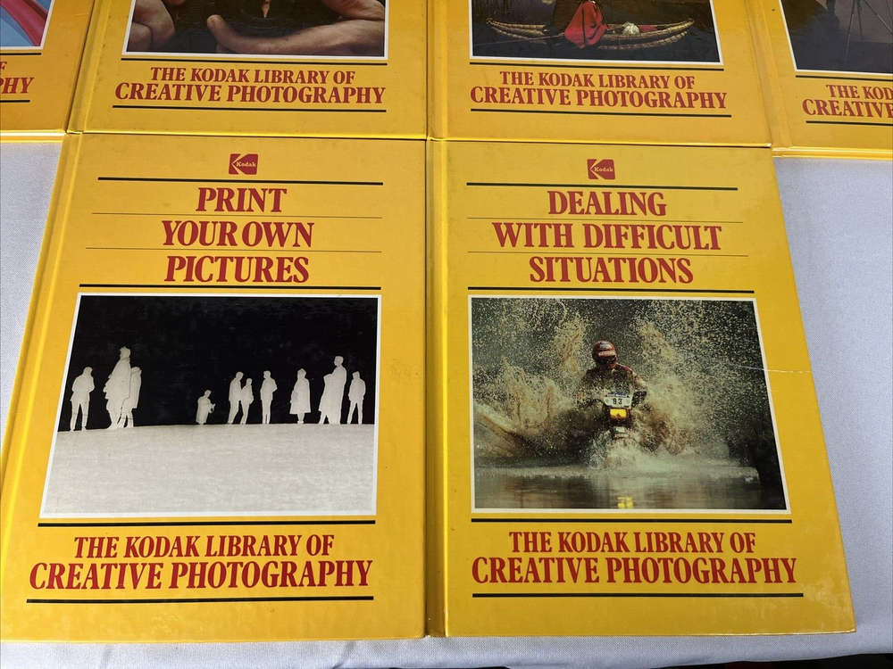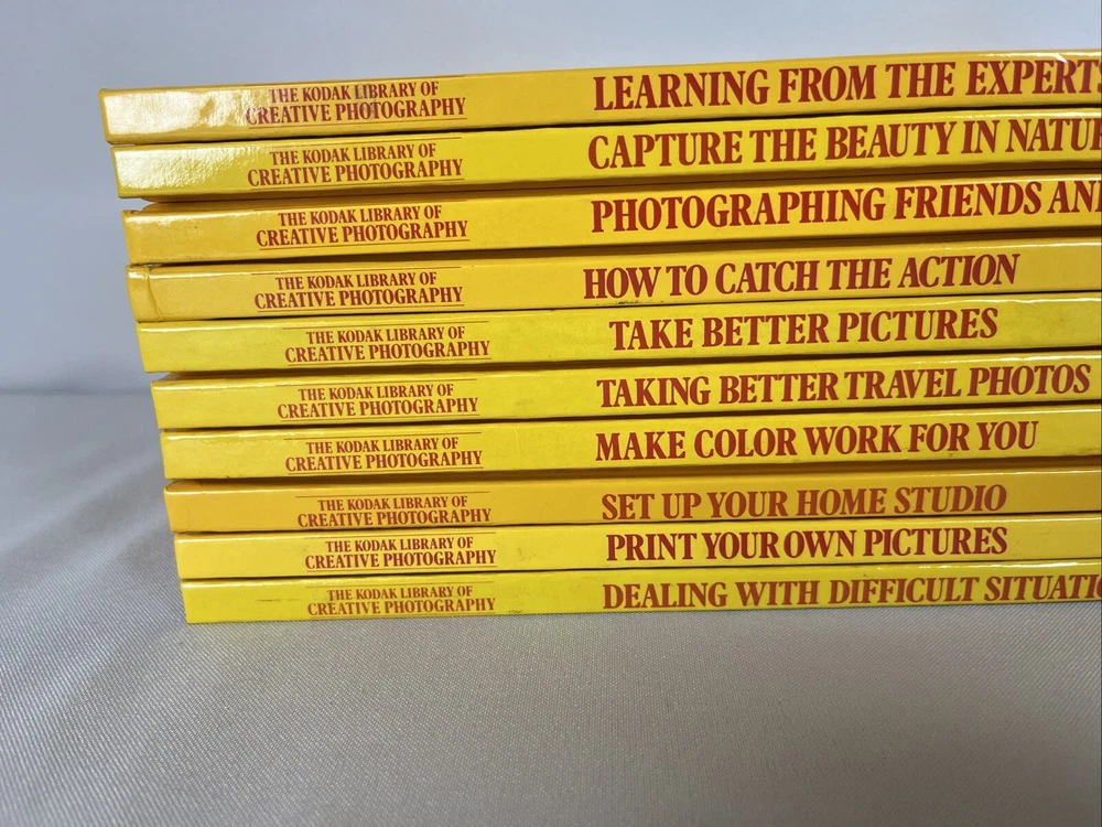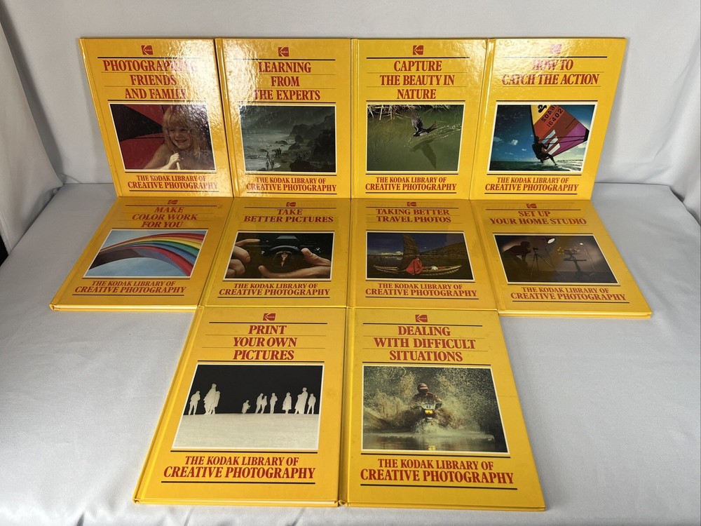 The Kodak Library Of Creative Photography - set of 10 Hardcover PRE-OWNED - KODAK SET OF BOOKS IS IN GOOD CONDITION WITH SOME WEAR ON THE EDGE / CORNERS OF THE COVER / SPINE Fast and Secure shipping! WE HAVE SEVERAL OTHER DIFFERENT KINDS OF ODD, OLD, VINTAGE, NEW OR OTHERWISE SOMEWHAT UNIQUE ITEMS, CHECK IT OUT Thank you for looking at our listing, if you should have a question drop us a line. We are usually pretty good at getting back quickly. Have a great Day!