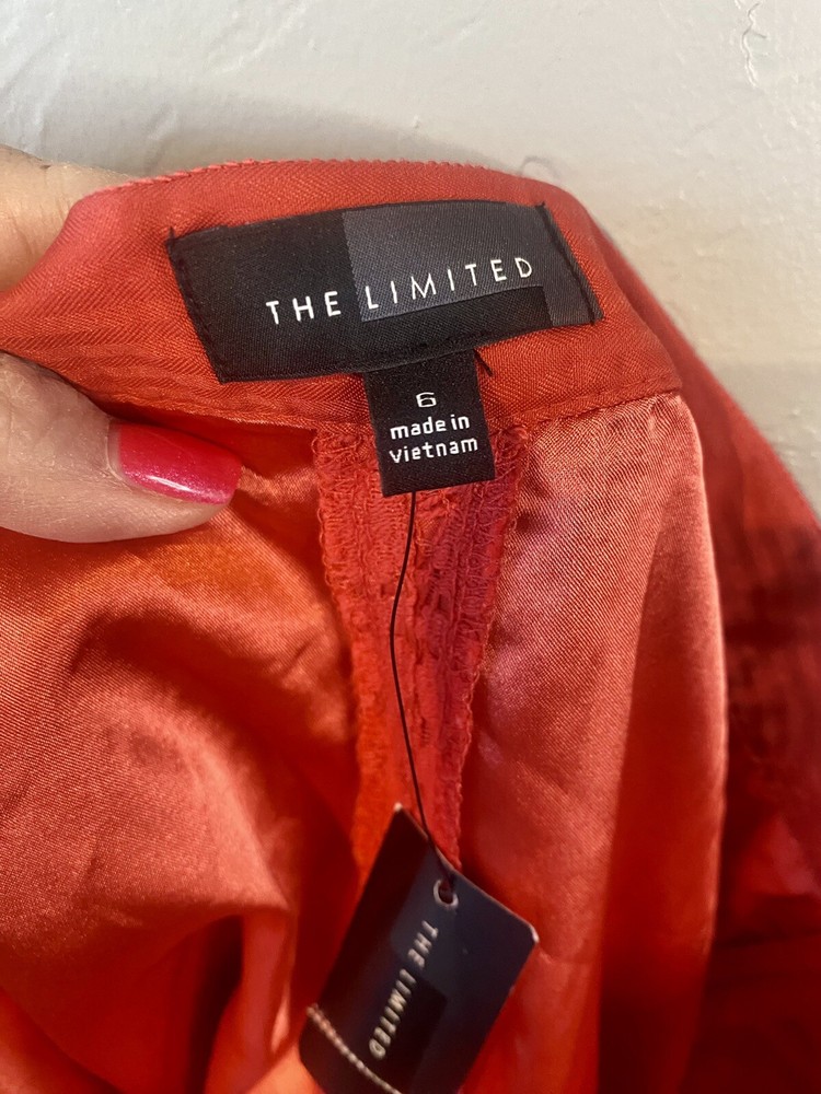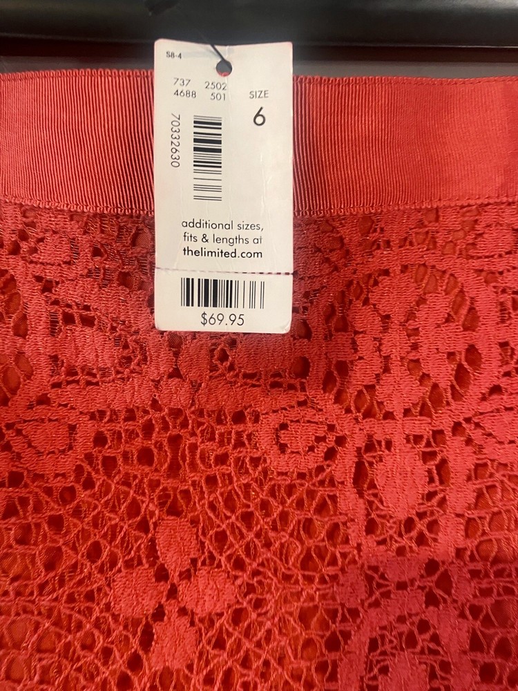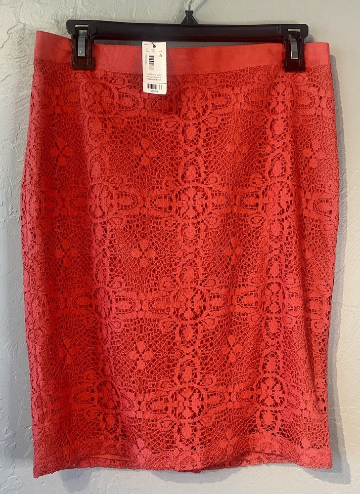 The Limited Women Skirt Size 6 Pencil Side Zip Lined Red Orange Stretch Lace NEW.