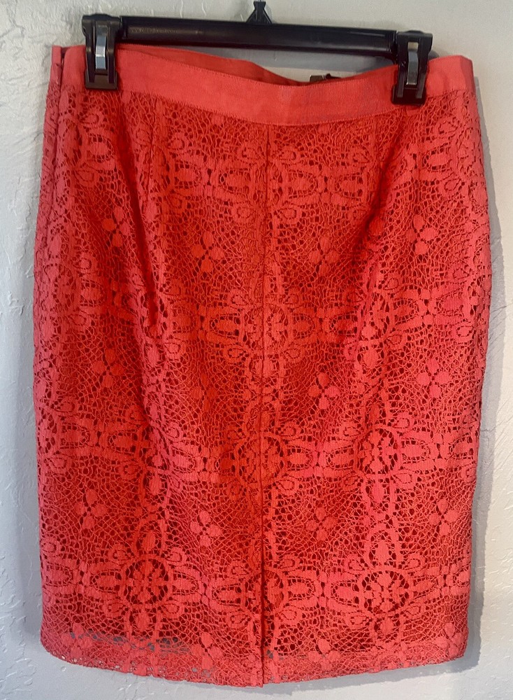 The Limited Women Skirt Size 6 Pencil Side Zip Lined Red Orange Stretch Lace NEW....
