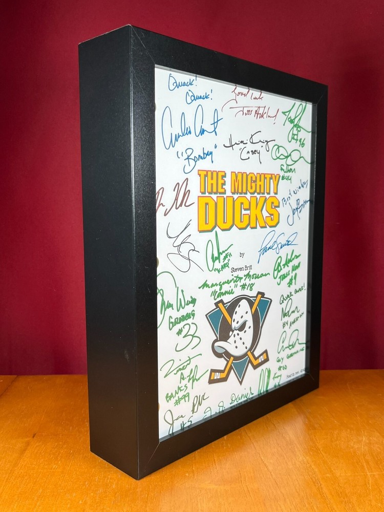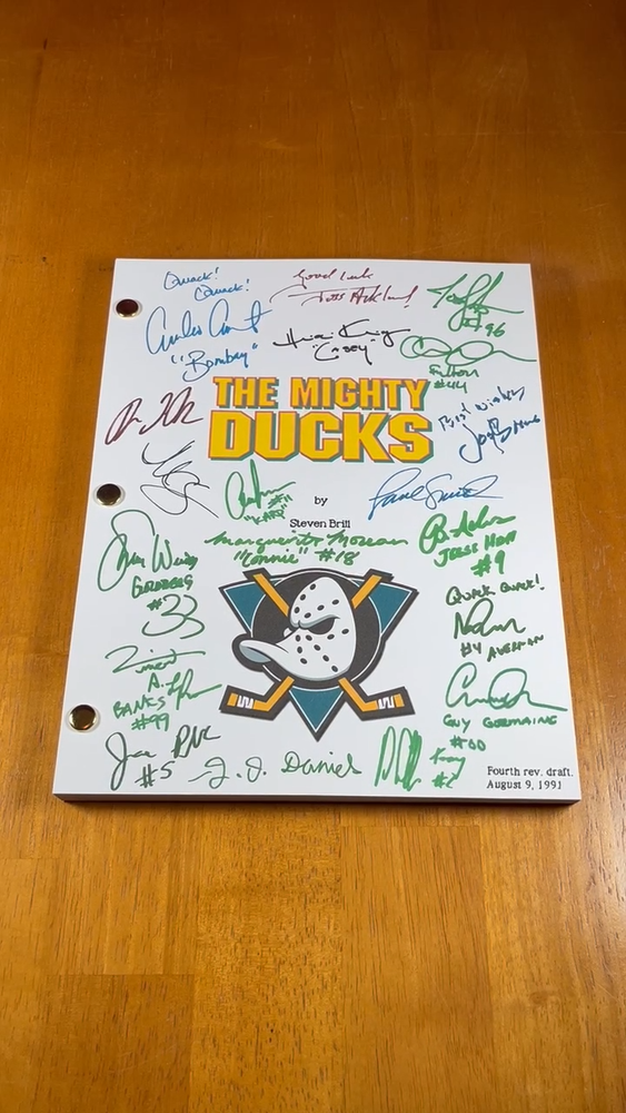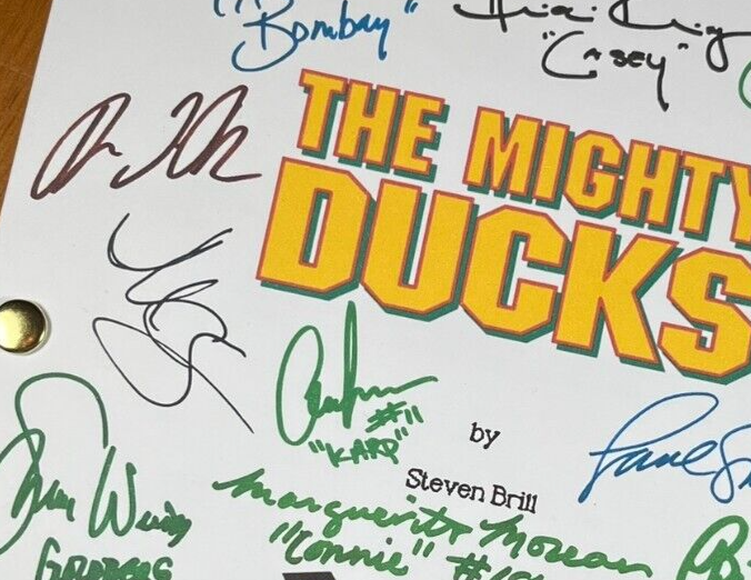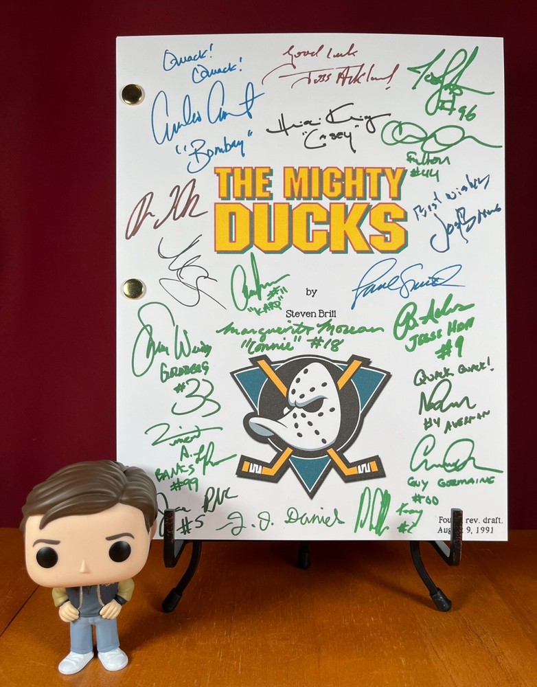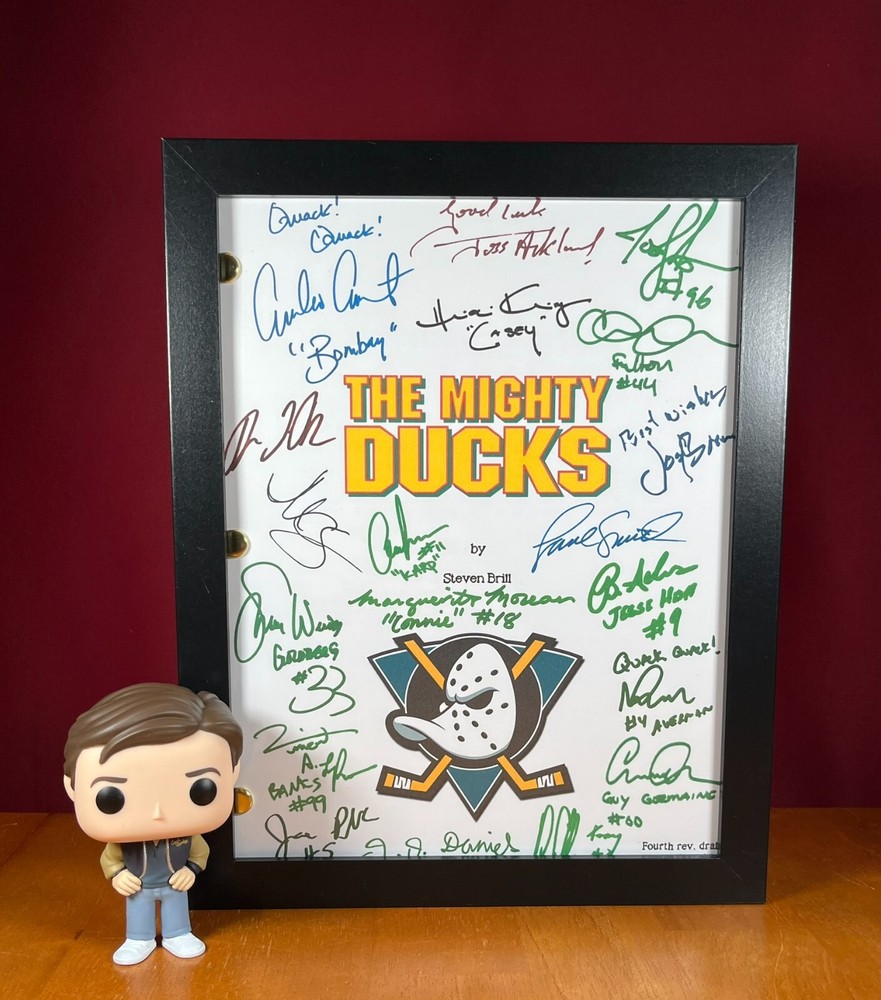 ***All items are also available WITHOUT the autograph reprints- just message me to let me know if you'd like the item plain.*** ***Don't Forget To Check Out The Other Items I Have For Sale! Up for sale is "The Mighty Ducks" script that includes 19 cast and crew reprinted autographs on the cover. Their names are listed below in alphabetical order by first name. This is the actual script in proper format, printed on single pages. NOT a double-sided dialogue transcript, which is what a lot of screenplays you can find for sale seem to be these days. It is 120 pages long , plus the cover, and is the entire movie. The cover with the autographs has been printed on 8.5 x 11 inch cardstock, so it is more sturdy. The rest of the script is printed on standard 8.5 x 11 inch paper. An 8.5 x 11 inch white magazine board has also been attached as a back cover to help provide stability and sturdiness for reading, as well as displaying. The pictures in the listing are of the screenplay you will receive- not pictures of a computer image of what it COULD look like. What you see is what you get, minus the frame. If you buy this, you are getting the script only- NO FRAMES, OR ANYTHING ELSE, ARE INCLUDED . The pictures that show the item framed are to give you an idea of what it could look like in your home when framed. Soon, if not all ready, you'll see other sellers copying my covers/cards/listings, along with the exact same autographs. (And a big hello to them!) Just remember that you saw them here first. :) This item makes a unique gift for any movie lover, collector, mild enthusiast, or just a fan of the medium. It's a great way to display your fandom without paying the cost of an actual handwritten autograph. Because once it's on the wall, it will be hard to tell either way. Screenplays are nice, because there are usually deleted scenes, or alternate dialogue, written in them, and this one is no different. So trust me, if you're a fan, this is for you. The signatures included are: Aaron Schwartz (“Dave Karp”) Brandon Quintin Adams (“Jesse Hall”) Danny Tamberelli (“Tommy”) David Newman (Music) Elden Henson (“Fulton Reed”) Emilio Estevez (“Coach Gordon Bombay”) Garette Ratliff Henson (“Guy Germaine”) Heidi Kling (“Casey”) J.D. Daniels (“Peter”) Jane Plank (“Tammy”) Josef Sommer (“Gerald Ducksworth”) Joshua Jackson (“Charlie Conway”) Joss Ackland (“Hans”) Lane Smith (“Coach Reilly”) M.C. Gainey (“Lewis”) Marguerite Moreau (“Connie”) Matt Doherty (“Les Averman”) Shaune Weiss (“Goldberg”) Vincent LaRusso (“Adam Banks”) FOR INTERNATIONAL BUYERS: Import duties, taxes, and charges (if there are any) are not included in the item price or shipping cost. These charges are the buyer's responsibility, not the seller's. FOR INTERNATIONAL SHIPPING: I ship internationally using the eBay Standard International Shipping method. It means I send the item to an eBay hub in the United States and they forward it to you. I have no idea what the shipping cost to you is, as eBay handles that on their end, nor do I make any money from it. If you buy more than one item from me, you will have to pay individual shipping for each item, as per eBay, I cannot combine shipping. However, if you're interested in more than one item, please contact me BEFORE YOU BUY, and I can create a special listing that will include all the items you want, that way they can ship together and hopefully save you some money. Thank you! ! Please be aware that sometimes scripts can vary between page and screen. Some are first drafts, some are revised, and some are finalized. It is common for there to be differences between the script and the final version of the movie that you have seen- but that's also part of the fun! So just a heads up. :)