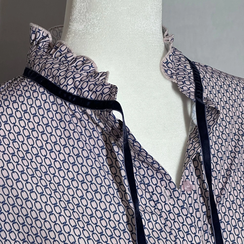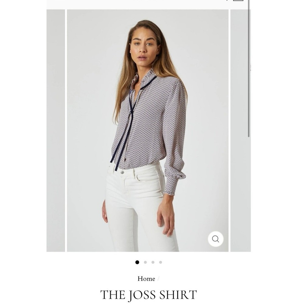 <![CDATA[<div>The Shirt was founded by Rochelle Behrens. After years of safety pinning her shirt closed while working in politics in Washington, DC, Rochelle designed and patented a flawless shirt. Since then, she’s been obsessed with making perfectly fitting pieces that make women feel confident in their clothes. There are extra buttons that you can hide from outside to prevent the shirt from having “gaps” in coverage between buttons when worn. This blouse is in next to new condition and appears never to have been worn. Great velvet tie and ruffle details. Originally retailed for $150. About MKTLUXURY: *PLEASE REVIEW ALL PHOTOS FOR CONDITION BEFORE PURCHASING. *The item shown is the item you will receive. *Smoke free home. *Fast shipping. *Accepting all reasonable offers. *Bundles welcomed! Save on shipping! *Ships from North Carolina The Shirt Classic Style Tailored Look Velvet Details
