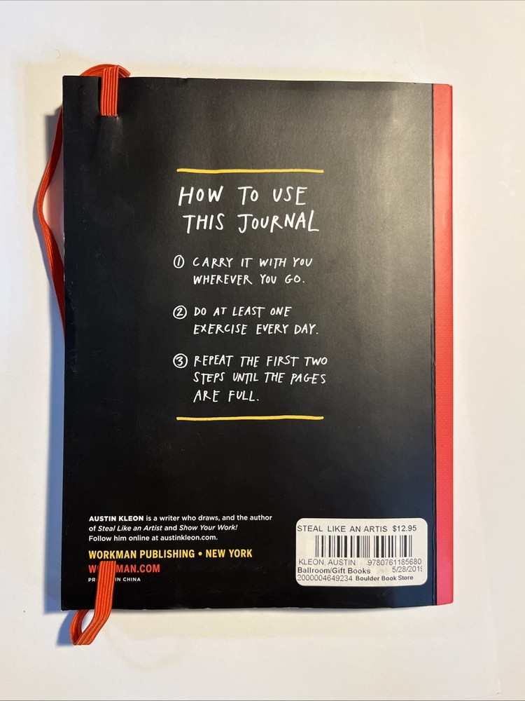 "The Steal Like an Artist Journal" by Austin Kleon is a creative notebook designed for individuals looking to boost their creativity and productivity. Published by Workman Publishing Company in 2015, this trade paperback features illustrations and 224 pages of guided journaling prompts. Ideal for fans of self-help, non-classifiable books, and games & activities, this journal helps creative kleptomaniacs express themselves and unleash their artistic potential. With its compact size of 8 x 6 inches and a weight of 13.8 ounces, this book is a convenient and inspiring companion for anyone seeking to enhance their creativity through writing and art."