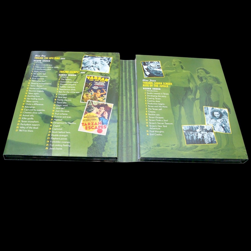 The Tarzan Collection: Johnny Weissmuller is a 4-disc DVD set released in 2004, featuring six action and adventure films starring Johnny Weissmuller as Tarzan. The movies are presented in black and white and include behind-the-scenes featurettes. The set includes English, French, and Spanish subtitles and languages, making it accessible to a wide audience. With a total runtime of 527 minutes, this collection offers an extensive viewing experience of the classic Tarzan films produced by Warner Bros in the United States This multi-pack contains six classic Tarzan films starring Johnny Weissmuller: TARZAN, THE APE MAN (1932); TARZAN AND HIS MATE (1934); TARZAN ESCAPES (1936); TARZAN FINDS A SON! (1939); TARZAN'S SECRET TREASURE (1941); and TARZAN'S NEW YORK ADVENTURE. Also included is a documentary on Johnny Weissmuller and the legend of Tarzan.