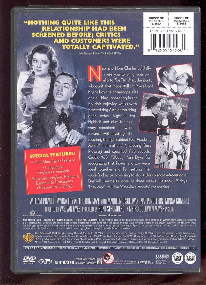 GS#202-17276-700+-RL2310 Dean Martin That's Amore By: Warner Bros. (67568) Condition: Like New: DVD Case in very good condition with top security seal unbroken, but plastic wrap removed. Appears NEW and unused, but cannot verify so we listed as like new. Info: See scanned Picture Starring: William Powell, Myrna Loy, Maureen O'Sullivan, Nat Pendleton, Minna Gombell Directed By: W. S. Van Dyke Running Time: 91 Minutes Rated: Not Rated Other: 1934/B&W Check out my other items ! Be sure to add me to your favorites list !