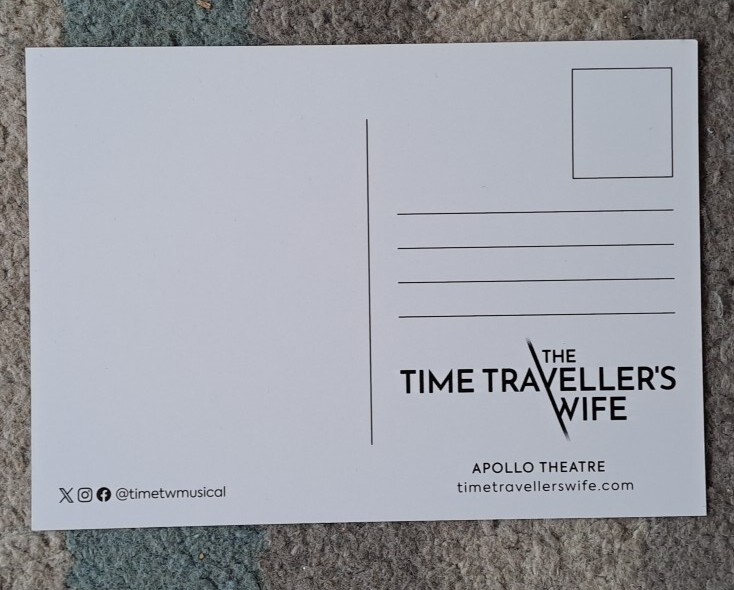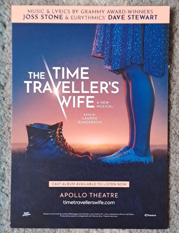 This promotional postcard for The Time Traveller's Wife at the Apollo Theatre in London features Joss Stone music & Lyrics and is perfect for any theatre or postcard collector. The postcard is an original and was produced in the United Kingdom around the year 2023. The card is not signed, but the image and design are captivating and would make a great addition to any collection. This postcard is a must-have for fans of the play or Stone, and a unique piece for any collector of theatre or postcards.
