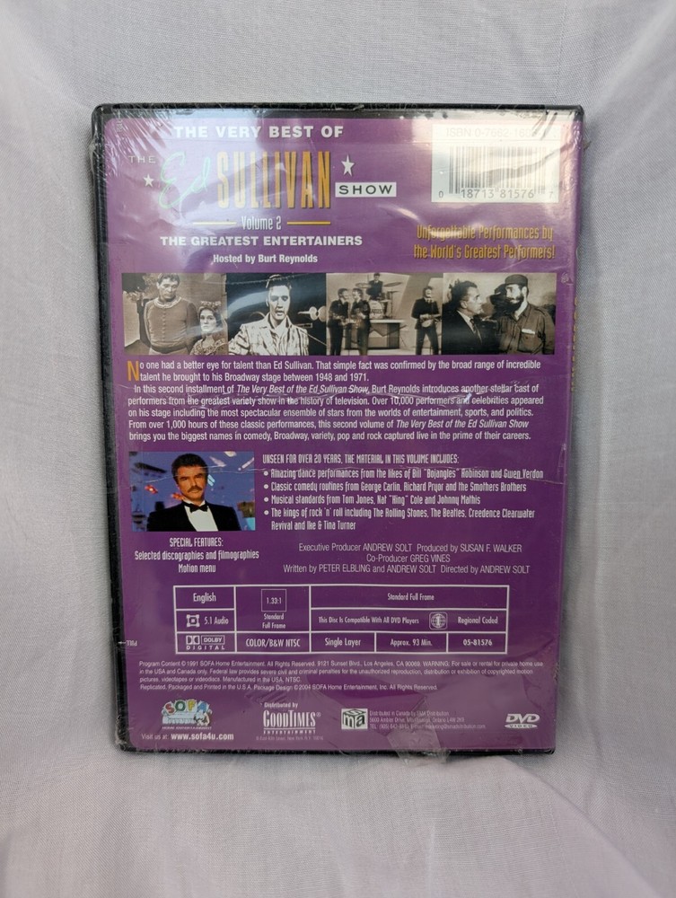 Free Shipping On All Domestic Orders Home About View All Products Contact The Very Best Of The Ed Sullivan Show Volume 2 - The - DVD - Multiple Formats The Very Best Of The Ed Sullivan Show Volume 2 - The Greatest Entertainers - DVD - Multiple Formats Black & White Dolby Ntsc - **Excellent Condition** Please Note: Unless otherwise stated : All of our listings are Region 1 DVDs, which will play in U.S. DVD players. Item specifics UPC: 018713815767 EAN: 0018713815767 Original Title: The Very Best of The Ed Sullivan Show Volume 2 - The Greatest Entertainers Format: Multiple Formats, Black & White, Dolby, NTSC Record Type: DVD Record Label: Sofa Entertainment Release Year: 2004 Item Dimensions: 7.25x5.25x0.5 Inches Package Dimensions: 7.1x5.42x0.58 Inches DVD Region Code: R1 Disc will play perfectly. Comes complete with all the original included artwork. Both artwork and disc will be in very good condition. Either may show some signs of prior use (as may the case). We guarantee your total satisfaction with every single order. General Shipping Terms Returns About Us FREE SHIPPING PLUS FREE RETURNS* Ships in 1-2 Business Days We care as much about your item as you do which is why each item is carefully packaged to ensure a safe delivery. We typically ship within 1-2 business days (excluding weekends & holidays) from when your payment clears then expect your order to arrive in 2-14 business day. I have changed my mind and would like to cancel/make changes to my order. We believe in providing our customers with an ultra-speedy service. To ensure this is achieved, all of our systems are fully automated so orders are transferred for processing within minutes. Because of this it is vital to double check your order before it’s submitted to eBay. If you request to cancel through eBay within 30 minutes of when your order is placed, we will do our best to cancel, however, it is not guaranteed. How long should I expect customer service will take to respond to my inquires? We aim to respond to all customers within 24-48 hours (Monday – Friday) *Free Shipping and Free Returns is available within the United States only. Certain conditions for free returns do apply. Please see Returns information tab for more details. OOPS! My Address is wrong. Can I update my shipping address after I place an order? Very sorry to hear that! Unfortunately, due to PayPal’s policy, once an order is placed we must ship to that address. So please confirm you have selected the correct address before placing your order. What do I do if I haven’t received my order? Rarely, but sometimes shipments through the postal carrier can get a little delayed. Rest assured, we have you covered. Here is what to do: While we aim to deliver your order in the time frame specified, transit delays outside of our control can occur. Because of this we would ask that you allow the following amount of time before contacting us about your late order(s): At Least 18 days for Orders delivered within the US and At Least 25 days for Orders delivered outside the US. If you do not receive your order in the time frame specified here, please contact us and we will do our best to resolve the issue as soon as possible. Basically, in the event of your order being delayed or lost in the post, we will do our best to provide a suitable resolution. What type of payments do you accept? We accept payments through PayPal. We do this because PayPal offers unmatched security as well as flexible payment options for the customer. Plus for security, your credit card information is never shared with us (or any 3rd parties). Payment options such as: credit card, debit card, or transfer from your bank account. Best of all, there is no cost to the buyer to utilize PayPal. FAQ: Zuber’s Policies Are As Follows: We carefully grade our items, so you should expect to receive the item in the condition as we have stated it in our listing, please see the 'Condition' section. Please do not expect anything beyond what is stated in our listings. New Items: Guaranteed to be in new condition and in their original packaging. For CDs this generally (but not always) means they will come in their shrink-wrap/plastic. Used Items: Please see our description in each listing for details regarding particular items. Note: If you are a CD/Book collector: I would not suggest buying an item in Used-Good condition as it will by definition show signs of wear and use. Also, please keep in mind that we match items based on the UPC/ISBN and use eBay catalog photos. The item you receive may not exactly match the photo, but will contain the same content. How quickly will I receive my item: For items shipped within the continental United States, expect your item to typically arrive within 4-14 business days from when you place your order. For items shipped outside the U.S., expect your item to typically arrive within 12-25 business days. Occasionally, orders are delayed a little longer. Can you tell me more about a particular item? All of the information that we have about a particular item is listed on the eBay page. We are unable to provide any additional information or guarantee that you will receive anything in addition to what is described in our listing. Carefully reading the item’s description details should answer most questions that you may have. Will I receive the exact item pictured on eBay? The images supplied on our listings are intended as a guide only. The item pictured on eBay is often a stock/catalog photo. Meaning that we did not take the picture. With this in mind it isn’t always possible for us to guarantee that you will receive the exact cover shown. You should receive the item described in our listing, but the cover could vary. Do you charge sales tax? We currently charge sales tax for only items delivered in Nevada Will you accept lower amounts/offers for your items? No. I am sorry all of our prices are fixed. What is your returns policy? Please see the Returns information tab