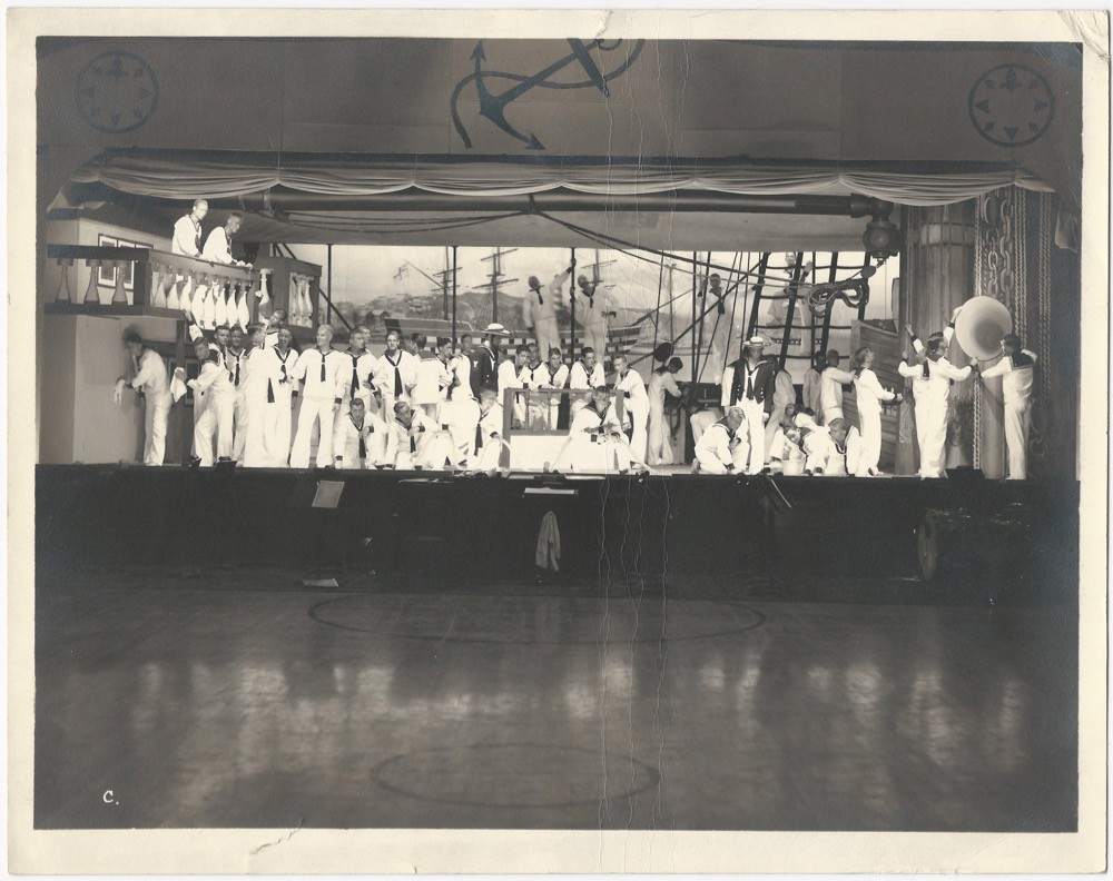 1930s Sailor Cast of Nautical Play on Stage (HMS Pinafore?) - - - DISCUSSION: An enthusiastic production of something nautical, I lean toward Gilbert & Sullivan, produced in a theater that appears to have doubled as a gymnasium. Photo. 9.5”x7.5”. Minor soil, some wear. Several rips on the margins, creases in the center. SHIPPING NOTES: We combine shipping charges on orders for more than one item- you pay the shipping fee for your first item, and any other items that you order at the same time are shipped with it for no additional charge [If you buy more than one item please ask us to send a revised invoice before you pay]. All ephemera & photos are shipped USPS ‘Ground Advantage’ (which used to be First Class Package) in a board-reinforced card mailer with a large red DO NOT BEND sticker. Stock #46956 - - - IMPORTANT INFORMATION FOR OVERSEAS BUYERS, PLEASE NOTE: SHIPPING: To comply with Ebay’s policies, all packages are shipped using recorded/trackable methods and you should check the postage quotes before completing a purchase. Our International shipping charges are based on the weight, when packed, of each package -we offer “combined shipping charges” for orders for more than one item –this often means the shipping cost for the items is less than it would have been if they had been purchased and shipped one at a time, so please ask us for a shipping quote if you are thinking about buying more than one item. Thanks! CUSTOMS CHARGES: Your post office may impose a customs charge on your incoming package, we have no control over this and no information about it, please check with your post office for more information. It is against U.S. law and Ebay rules for us to lie on the customs form about the value of packages, please do not ask us to do this. - Joslin Hall Books & Ephemera Selling books & ephemera since 1983 - Member of the Antiquarian Booksellers Association of America the International League of Antiquarian Booksellers and the Ephemera Society . Your satisfaction is guaranteed with every item you purchase.