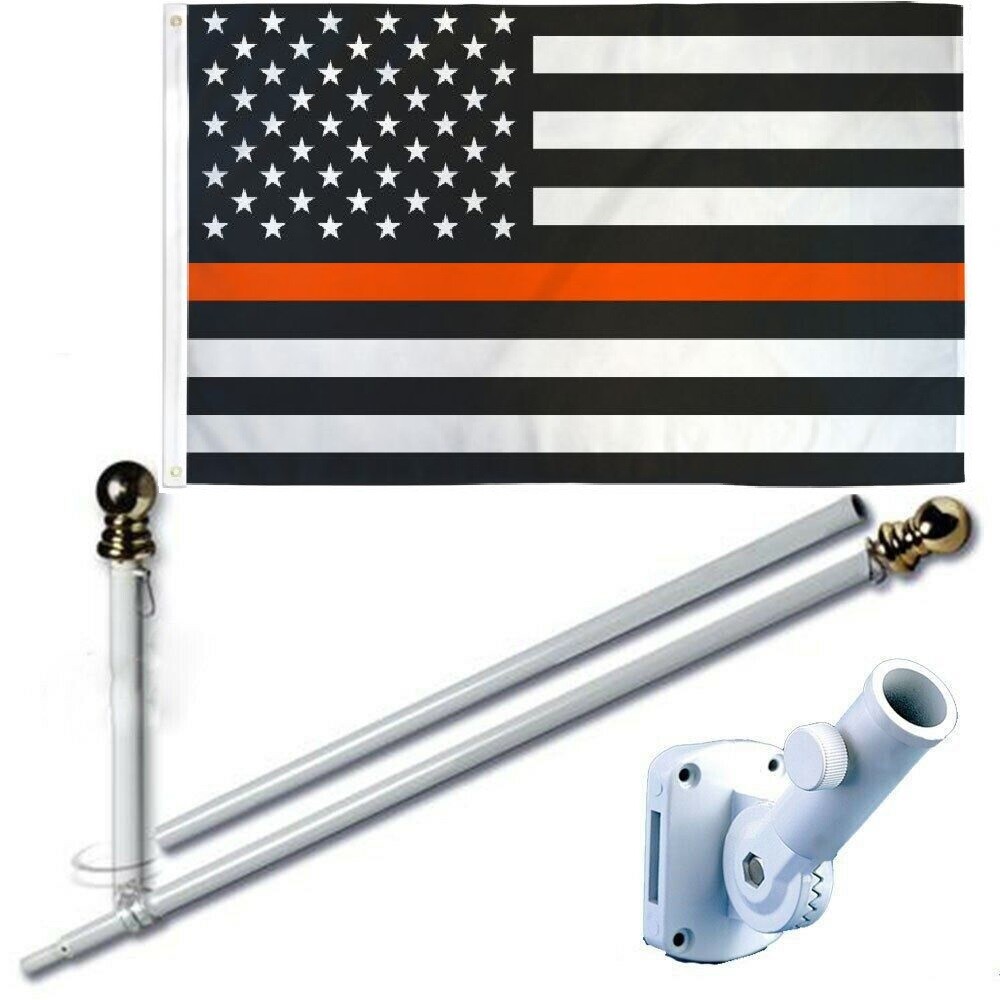 Thin Orange Line USA 3x5ft Flag with 6ft Tangle-Free Pole and Bracket