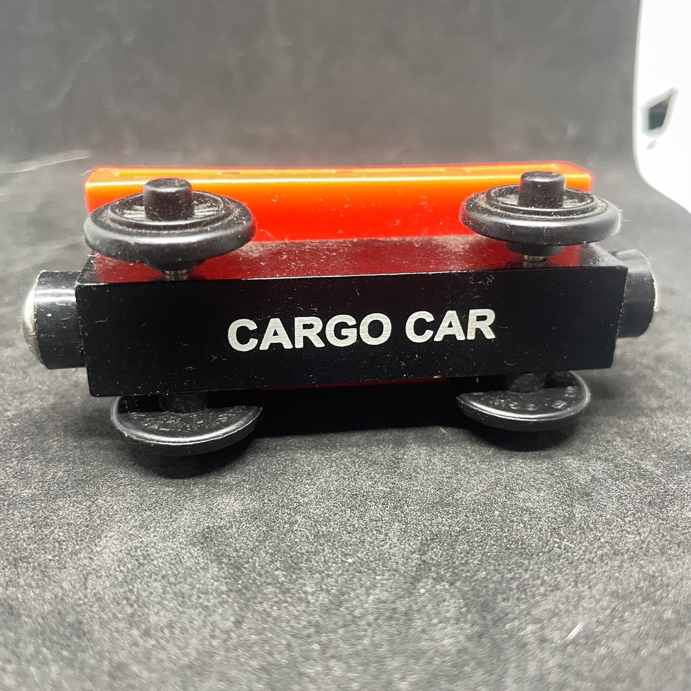 Thomas & Friends Wooden Railway Sodor Red Co With Orange Cargo Car. Loose - lightly played with. Wooden railway toys may have slight paint blemishes and dust from storage - please see photos....