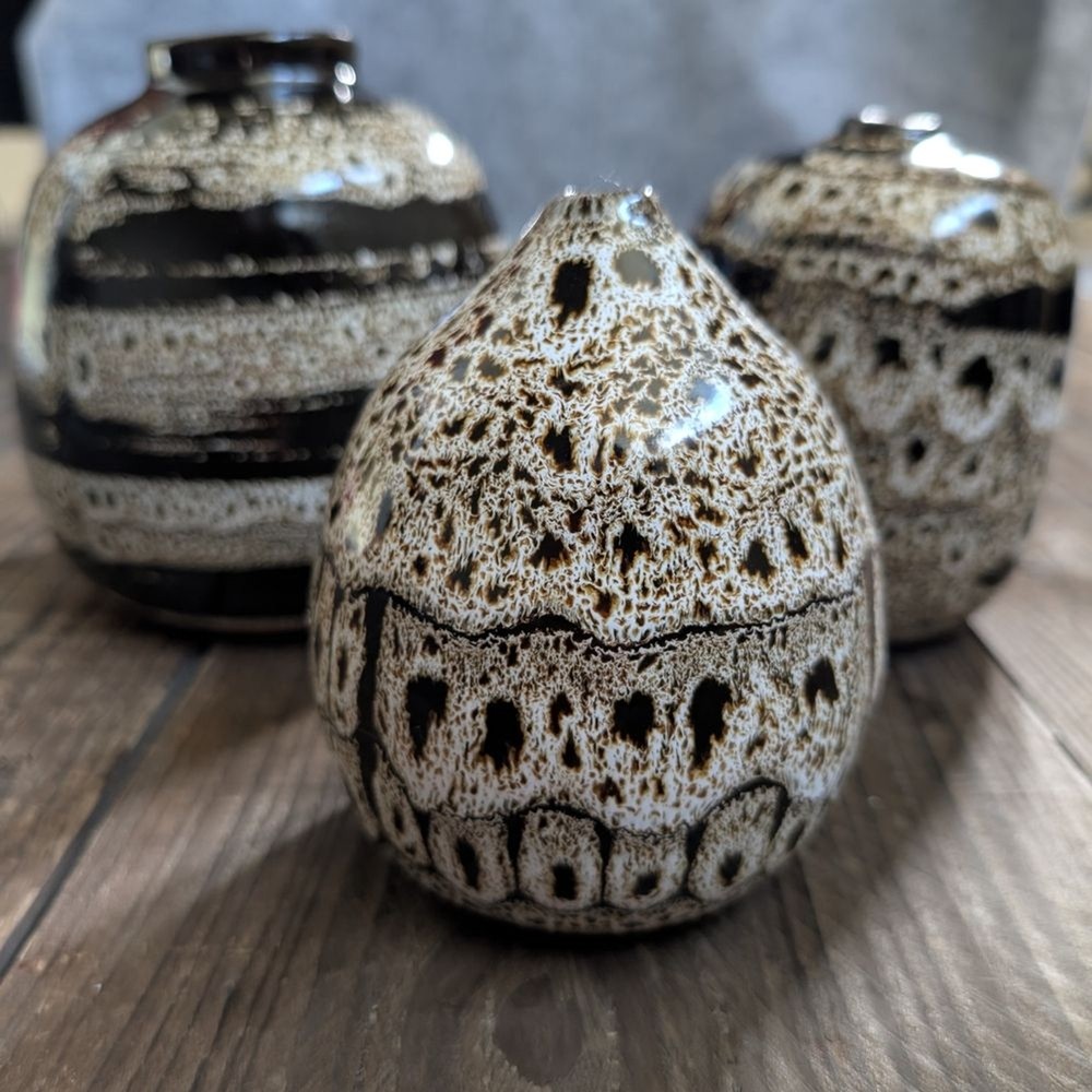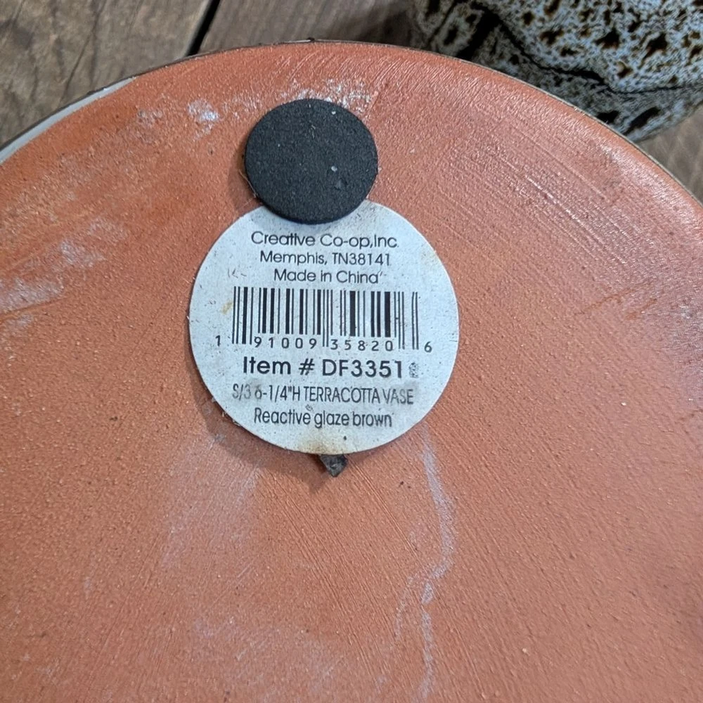 Three coordinated terracotta vases by Creative Co-op in a warm brown shade....