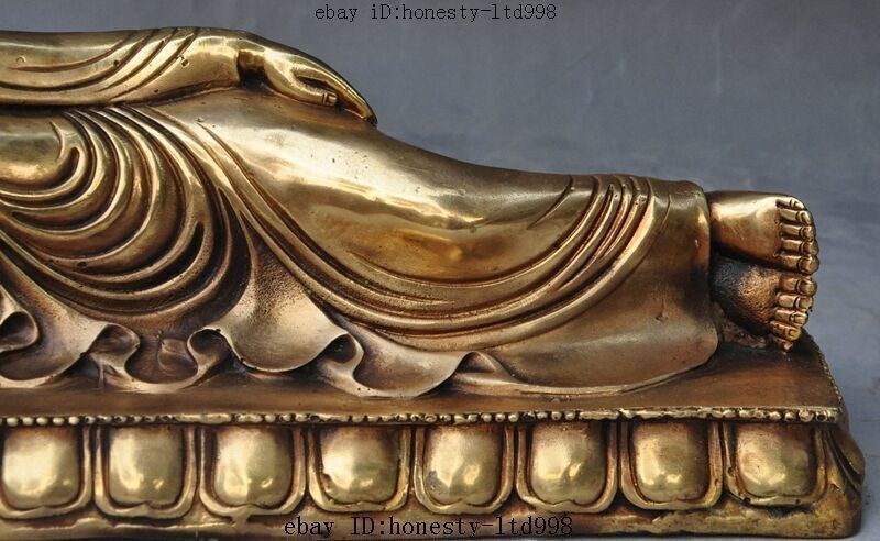 Tibet buddhism Joss brass sakyamuni Shakyamuni Tathagata Sleeping Buddha statue Size: Height 4.4 inch . Long13.6 inch . width4.8 inch Size: Height11 CM . Long34 cm . width12 cm Weight: 3.5 KG----included the weight of packing materials Materials: brass Condition: Good condition Origin: China Payment Delivery details Terms of sales About us Contact us Payment Payment methods accepted : Paypal only. Delivery details All items will be shipped within 1-2 days upon receipt of cleared payment. United States: By usps, 10-15 working days delivery! Other countries Regular AirMail Takes 25-35 working days . Terms of sales Please Note that size and color representation are subject to manufacturing variance and may not be exact. Also note that monitor settings may vary from computer to computer and may distort actual colors. Please read these terms thoroughly before placing your bid. About us Feedbacks are highly valued. If you have any problem about our products, please contact us. We will try our best to solve it: 100% communication, 100% exchange, 100% resend or 100% refund for you. WE DO NOT LIKE THE ONE WHO LEAVE NEGATIVE FEEDBACK WITHOUT COMMUNICATING WITH US. Happy communication, happy shopping experience! Please trust us! We will do as we promised for you. We maintain high standards of excellence and strive for 100% customer satisfaction! Feedback is very important to us. We request that you contact us immediately BEFORE you give us neutral or negative feedback, so that we can satisfactorily address your concerns. Contact us Do not forget to give us a positive 5 star rating after receiving your item. This is very important. thank you very much. We hope you are satisfied with our products and services. Thank you for your understanding of each seller, I wish you a happy shopping! Happy everyday. We will reply within 24-48 hours.