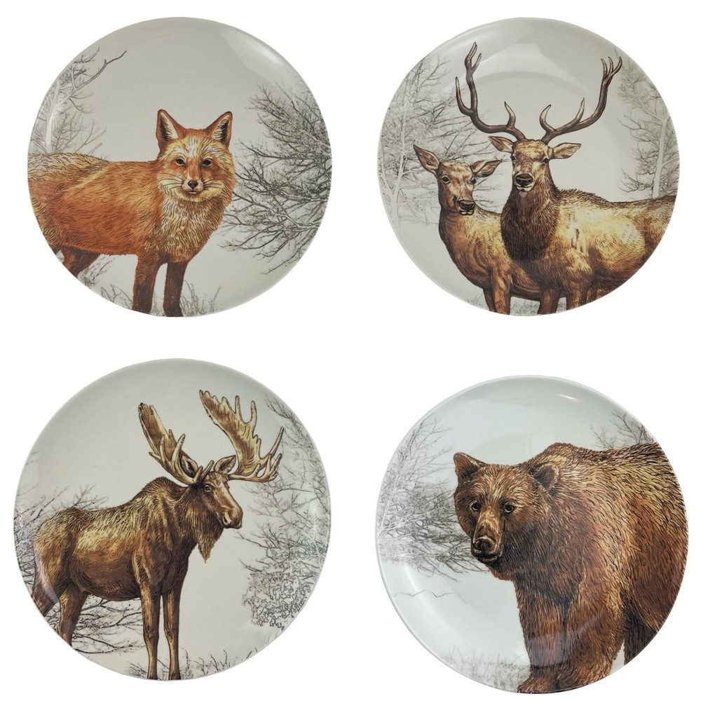 Tim Coffey Creative Co-Op Salad Plates Set of 4 Bear Elk Fox Moose Wildlife 8" Condition: They are in excellent condition with no chips, cracks, or scratches. They are pristine. Please see the photos for specifics on the condition of this beautiful set of salad plates. Measurements: 8" wide x 1" tall Weigh 1 lb each Set of four (4) Combined weight 3 b 13 oz ***All measurements are approximate*** International Buyers - Please Note: Import duties, taxes, and charges are not included in the item price or shipping cost. These charges are the buyer’s responsibility. Please check with your country's customs office to determine these additional costs before placing a bid or buying.