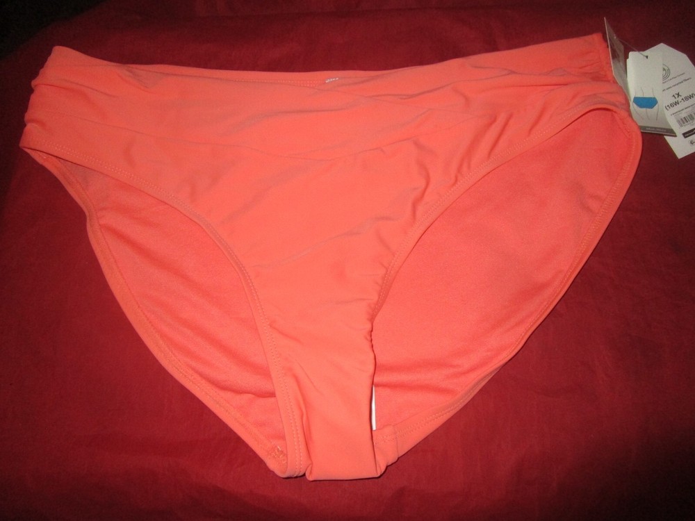 Time Tru Womens Bikini Bottoms V Waistband Mid Rise Bikini Swimwear 1X Orange