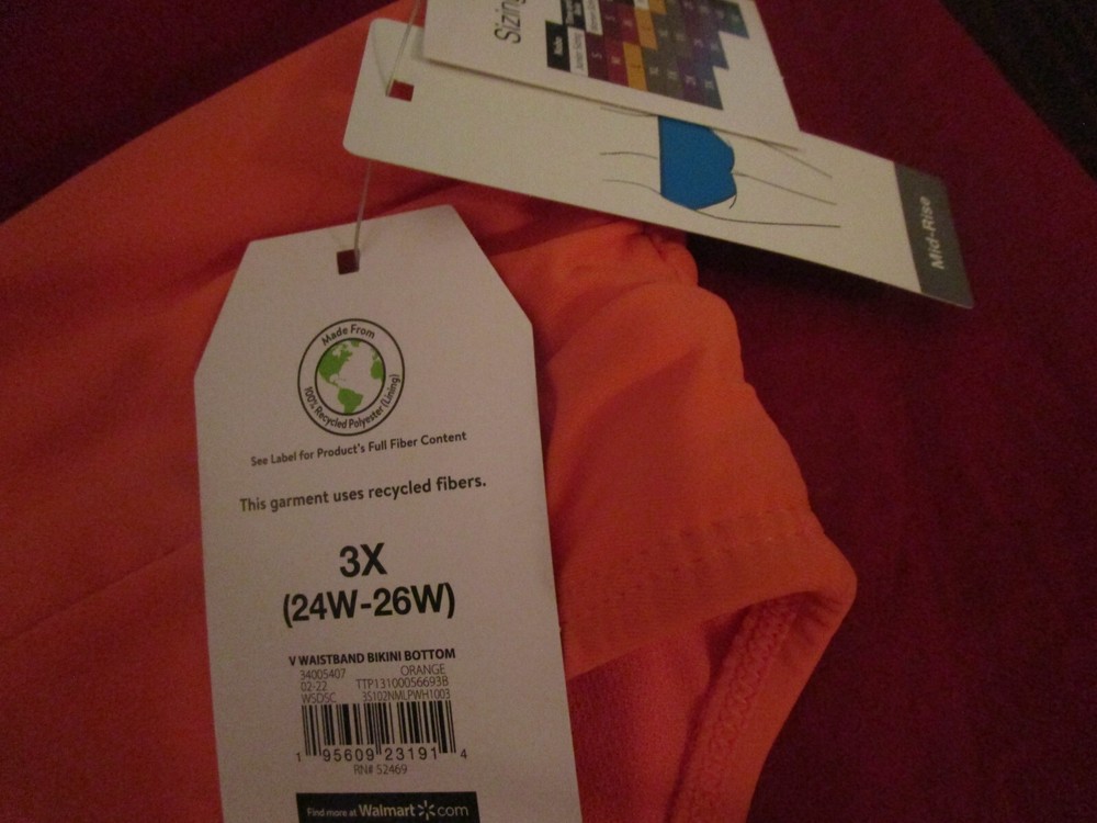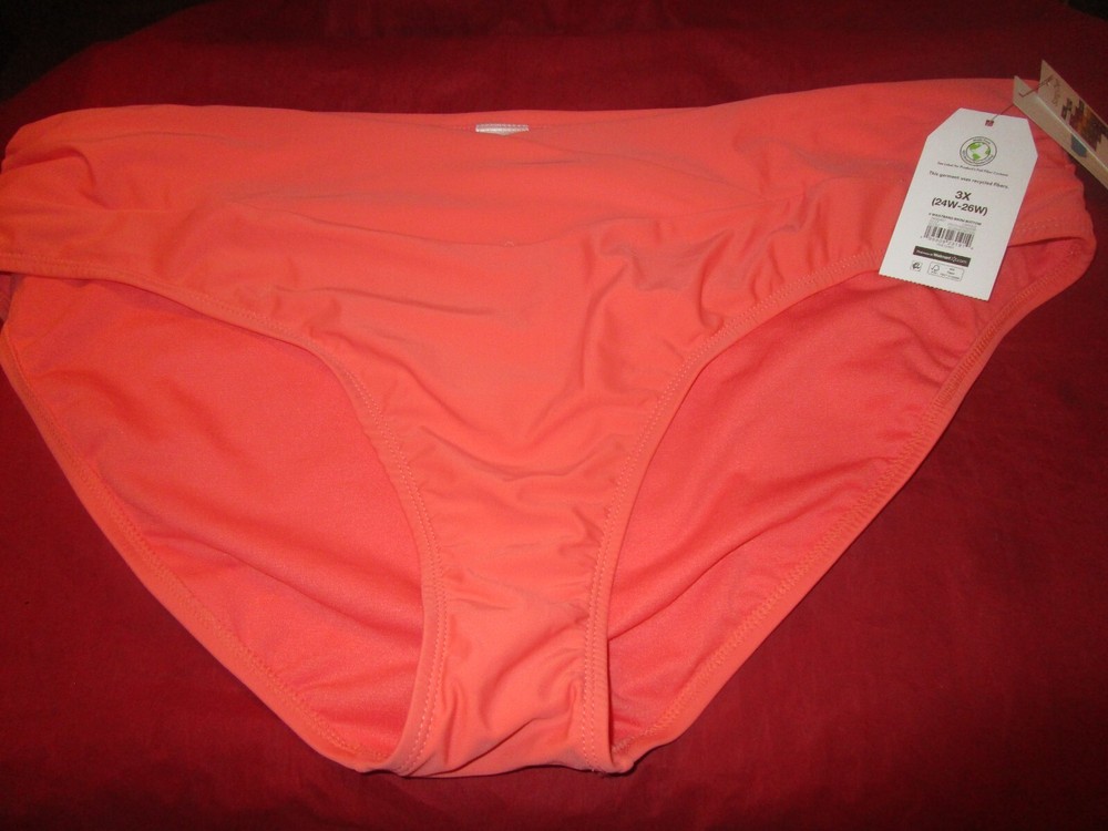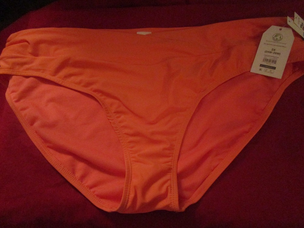Time Tru Womens Bikini Bottoms V Waistband Mid Rise Bikini Swimwear 3X Orange...