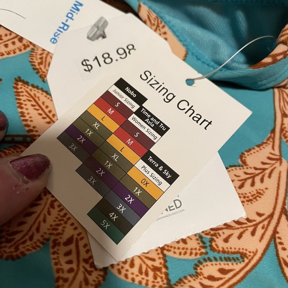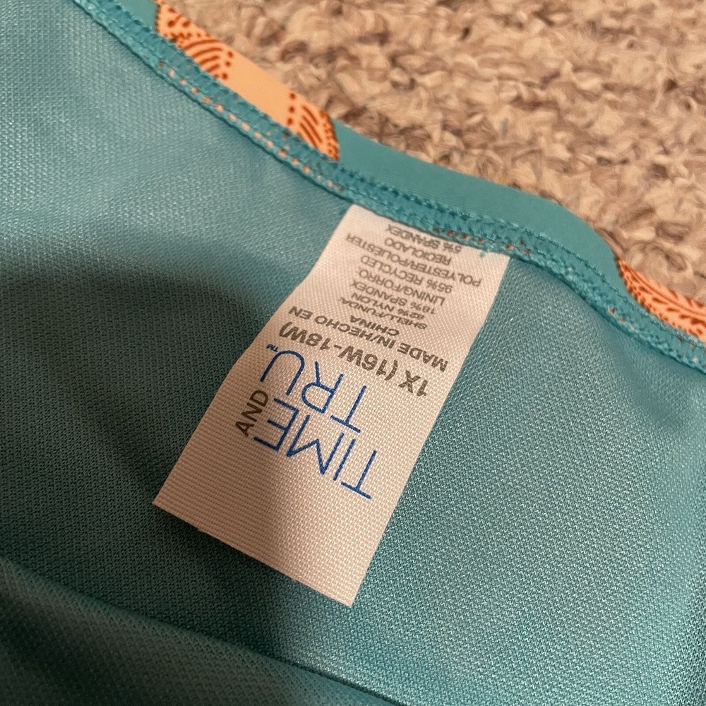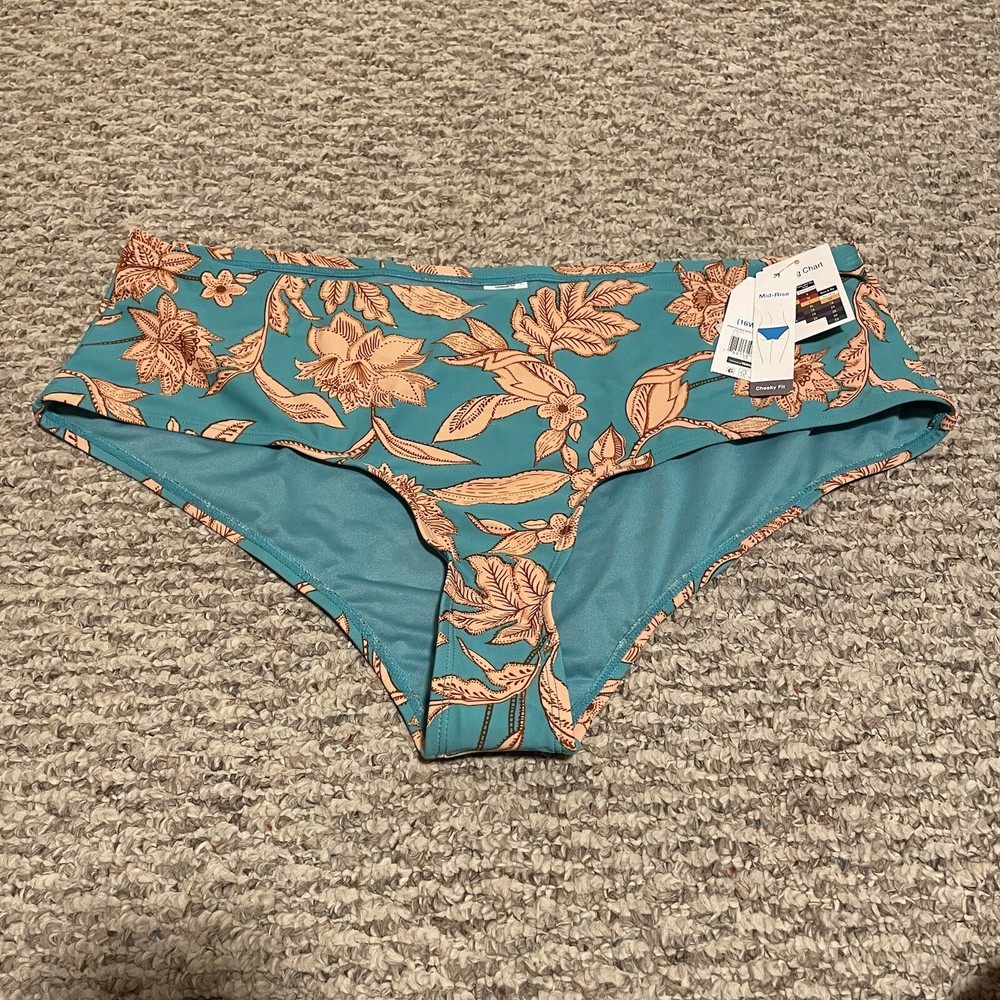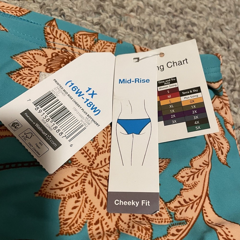 Time and Tru Blue Bikini Swimsuit Bottoms Orange Floral Mid Rise Cheeky 1X New with tags