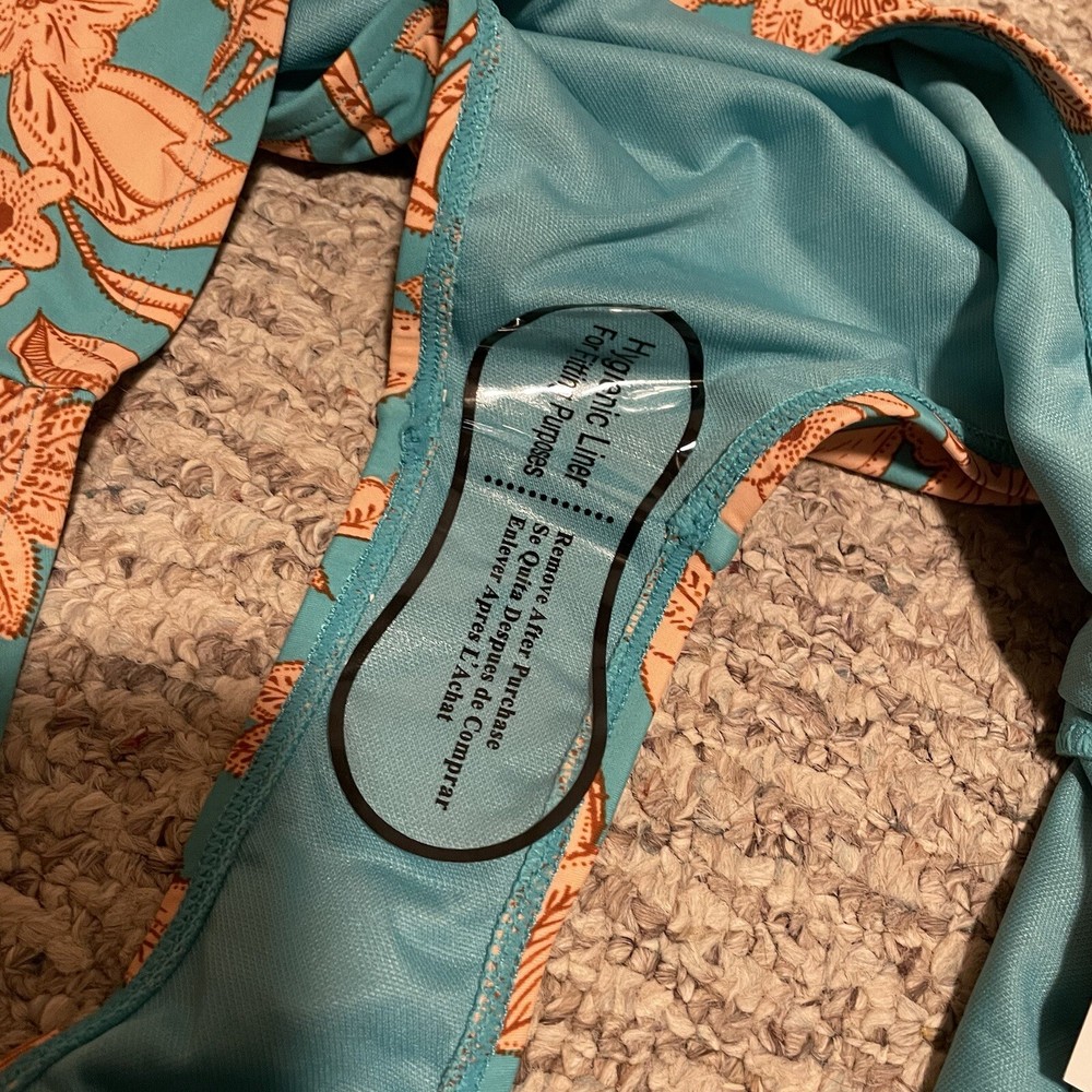 Time and Tru Blue Bikini Swimsuit Bottoms Orange Floral Mid Rise Cheeky 1X New with tags...