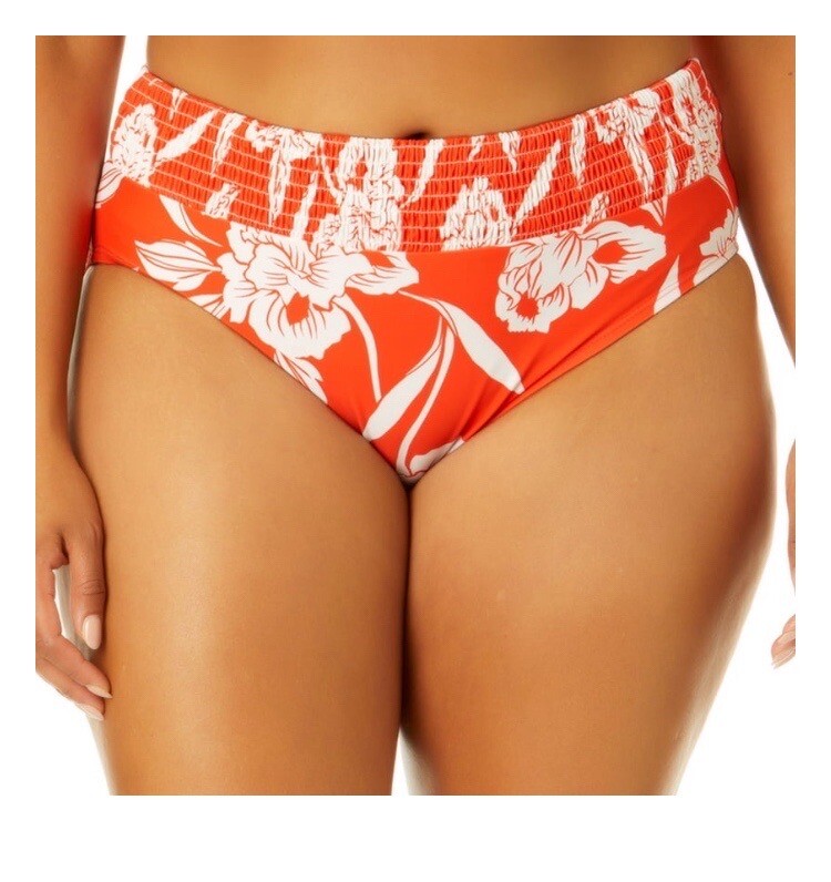 Time and Tru Women's Plus Size Mid Rise Smocked Swim Bottoms orange summer Vacay...