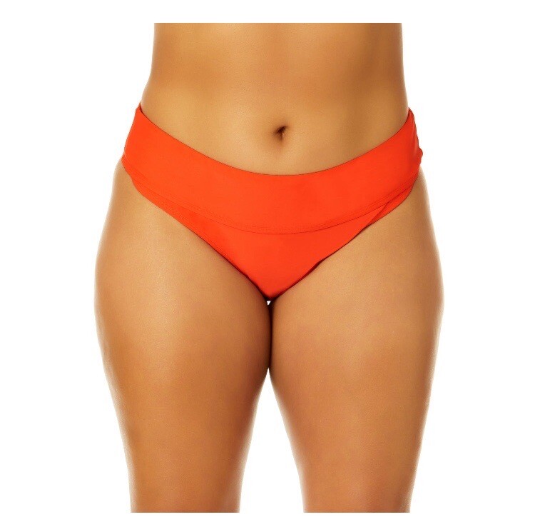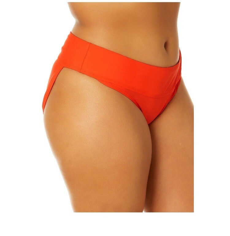 Time and Tru Women's Plus Size Mid Rise High Cut Bikini Bottoms orange bright 3x