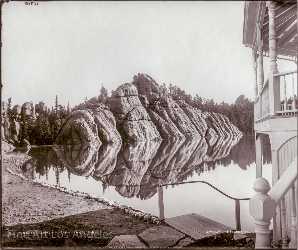 Offering a new Fine Art quality print of Timothy O'Sullivan's photo "Reflections at Sylvan Lake, South Dakota" 1890s, for the Detroit Photographic Company. This is a high quality reprint, unframed, approximately 7.5x10" on 8 1/2x11" archival fine art paper, suitable for matting, framing and display. O'Sullivan (1840-1882) was widely known for his work on geological expeditions in the western U.S. He took pictures of an untamed, pre-industrialized land, and made exact records of them with extraordinary beauty. He was also known for his photography during the Civil War. From the Fine Art Los Angeles Early Masters Collection, a unique group of fine art photos from the pioneers of photography. Your print will not have a watermark and will be shipped safely in a rigid photo mailer for its protection. Your satisfaction is guaranteed. Enjoy!