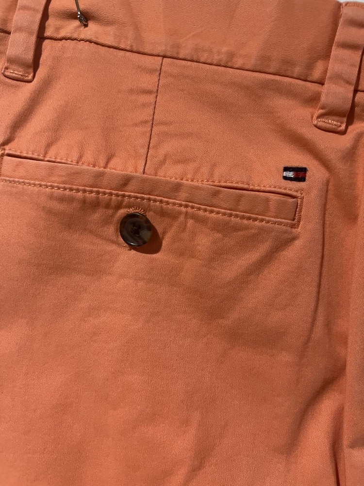 Tommy Hilfiger Men Casual Chino Shorts Mid Rise Pocket Orange Cotton Blend 34 Stunning Shorts - straight out of the cleaners Super soft cotton blend fabric Zipper / Button Closure Some Stretch Pockets in the front and back No Flaws :) *** All items are from a smoke and pet free home Measurements laying flat: Waist 17.5" Inseam 9"