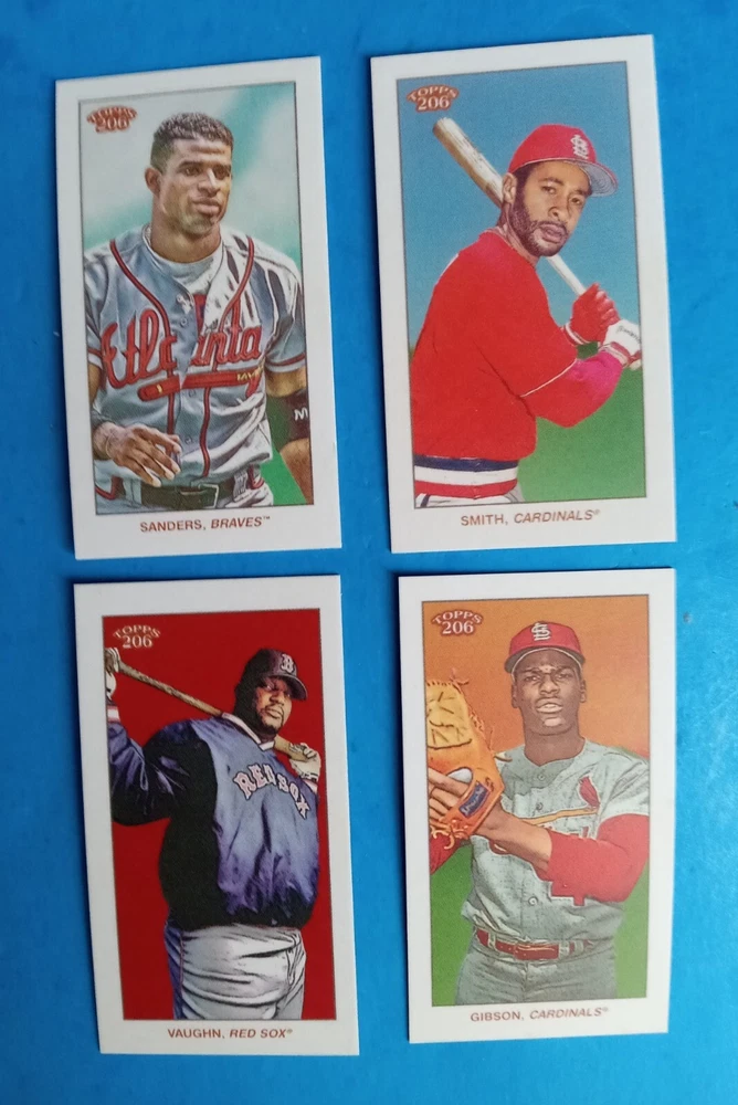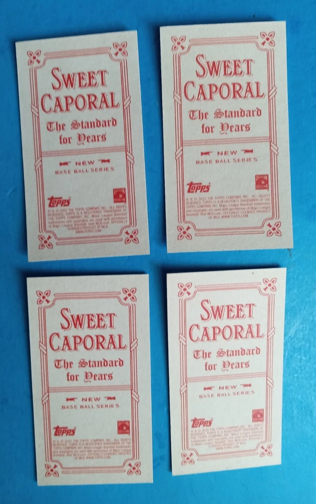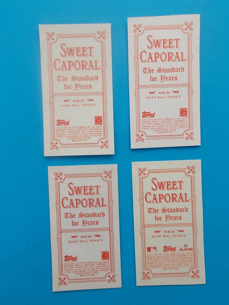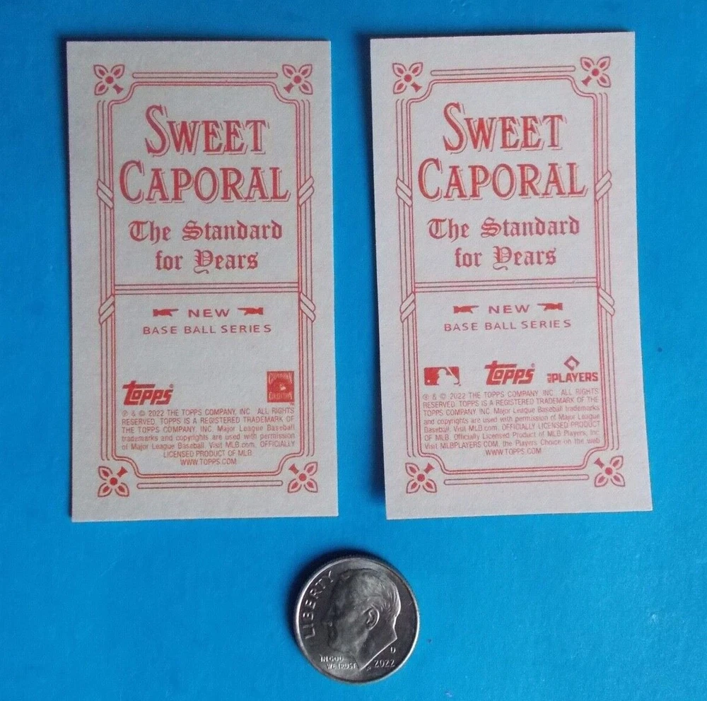 Offered : 2020 , 2021 , and 2022 Topps 206 Sweet Caporal cards SP , from various waves. Order what you want from the drop down menu * Tom Seaver : 2021 8th series Sweet Caporal ( limited to /59 copies produced by Topps) * Johnny Bench : 2021 6th series Sweet Caporal ( limited to /70 copies produced by Topps) * Babe Ruth : 2020 1st series Sweet Caporal ( limited to about /250 copies produced by Topps) * Larry Doby : 2020 1st series Sweet Caporal ( limited to /250 copies produced by Topps) * Tim Raines : 2022 3rd series Sweet Caporal ( limited to only /29 copies produced by Topps..some people state /28) * Yogi Berra : 2021 8th series Sweet Caporal ( limited to /59 copies produced by Topps ) * Yogi Berra : 2022 3rd series Sweet Caporal ( limited to only /29 copies produced by Topps..some people state /28 ) * Larry Walker : 2022 4th series Sweet Caporal ( limited to only /29 copies produced by Topps) * Roy Campanella : 2022 3rd series Sweet Caporal ( limited to only /29 copies produced by Topps) * Phil Neikro : 2022 1st series Sweet Caporal (limited to only /38 copies produced by Topps) * Nomar Garciaparra : 2021 8th series Sweet Caporal ( limited to /59 copies produced by Topps) * Jeff Bagwell : 2022 1st series Sweet Caporal (limited to only /38 copies produced by Topps) * Justin Verlander : 2022 5th series Sweet Caporal ( limited to only /32 copies produced by Topps) * Josh Gibson : 2022 3rd series Sweet Caporal (limited to only /29 copies produced by Topps..some people state /28 ) * Derek Jeter : 2022 4th series Sweet Caporal (limited to only /28 copies produced by Topps ) * Jackie Robinson : 2022 4th series Sweet Caporal (limited to only /28 copies produced by Topps ) * Ichiro : 2022 4th series Sweet Caporal (limited to only /28 copies produced by Topps ) * Alex Bregman : 2022 4th series Sweet Caporal ( limited to only /28 copies produced by Topps ) * Addie Joss : 2021 4th series Sweet Caporal (limited to only /59 or /70 copies produced by Topps,) * Tony Gwynn : 2022 3rd series Sweet Caporal ( limited to only /29 copies produced by Topps) * Casey Stengel : 2022 3rd series Sweet Caporal ( limited to only /29 copies produced by Topps) * Al Kaline : 2020 2nd series Sweet Caporal ( limited to 250 copies produced by Topps) * Ernie Banks : 2021 series 8 , Sweet Caporal ( limited to about 59 copies produced by Topps) * Lou Gehrig : 2022 series 3 Sweet Caporal ( limited to about 28 copies produced by Topps) * Bob Gibson : 2022 series 4 Sweet Caporal (limited to about 28 copies produced by Topps) , the only year Bob appeared in! * Deion Sanders: 2022 series 1 Sweet Caporal (limited to 38 copies produced by Topps). * Ozzie Smith : 2021 series 1 Sweet Caporal( I'm not sure how limited this card is , but pretty sure it's around 100-125 cards produced) *. Mo Vaughn: 2021 series Sweet Caporal Cards were pulled from packs, and put directly into protective sleeves. See photos for condition /centering. **If my price isn't right , message me your best offer** Ebay's standard envelope , which is 1st class with a form of tracking for cards under $20. Or choose 1st class in a bubble envelope for $4 and for cards over $20. Please make payment with in 4 days of listing end. Thanks in advance