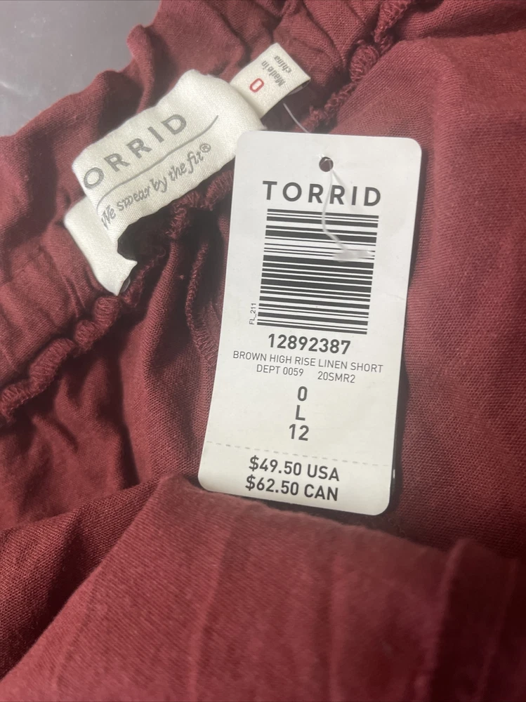 Torrid Drawstring Paperbag Waist Mid Short Pockets Rust Color Size 0 W-15.5" L-17" Quick Shipping